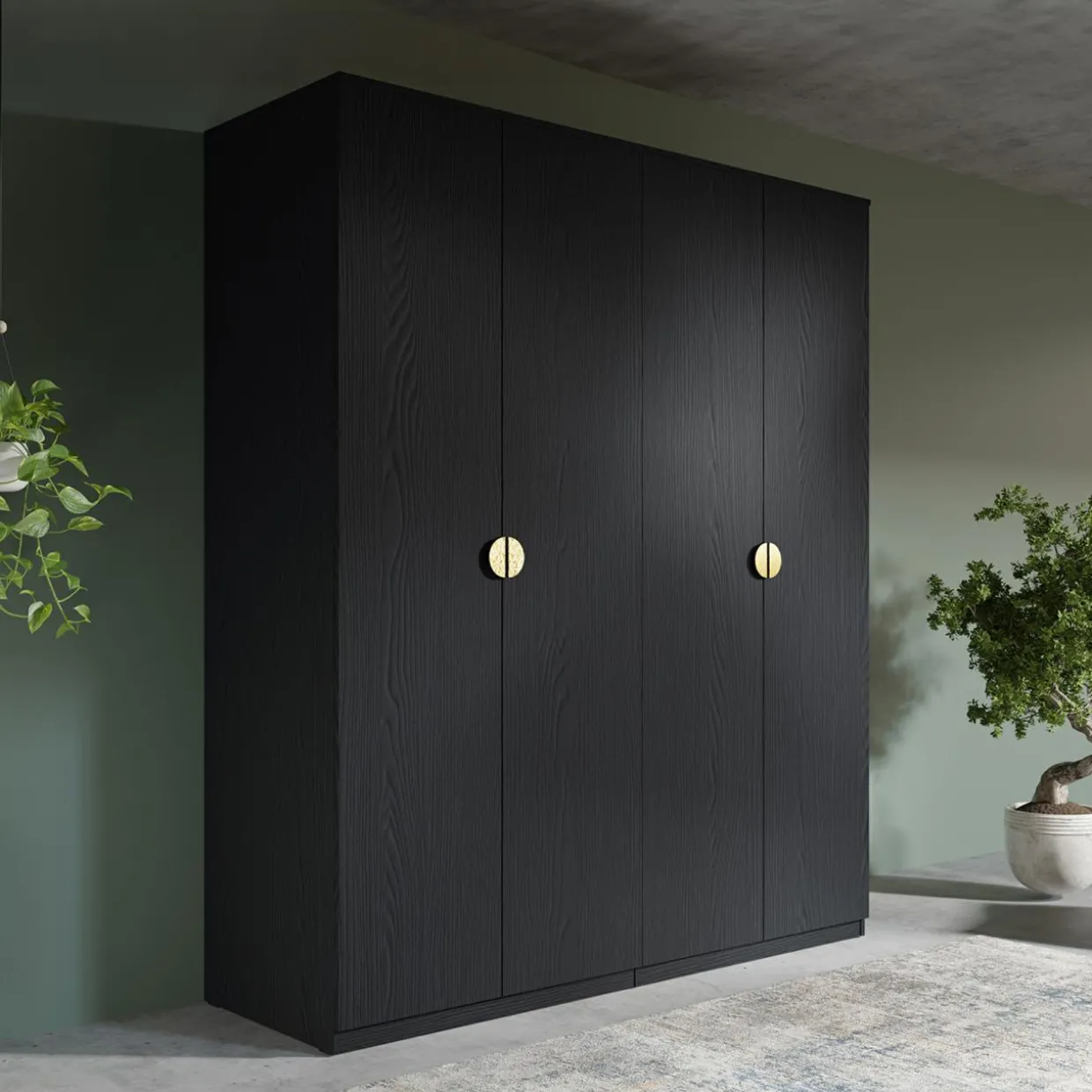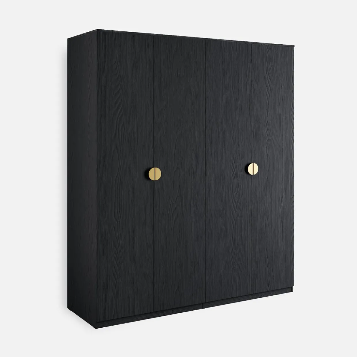 Szafa MOND sprawdzi się w sypialni dla dwojga — 2 drążki na ubrania ułatwią rozdzielenie eleganckiej garderoby i kurtek, a półki pozwolą na poukładanie reszty ubrań.