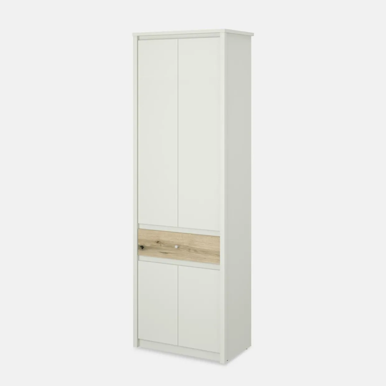 - Za 4 drzwiami kryje się drążek na ubrania, na którym zawiesisz sukienki, koszule czy marynarki, oraz półki — idealne do przechowywania ubrań, ręczników i pościeli.