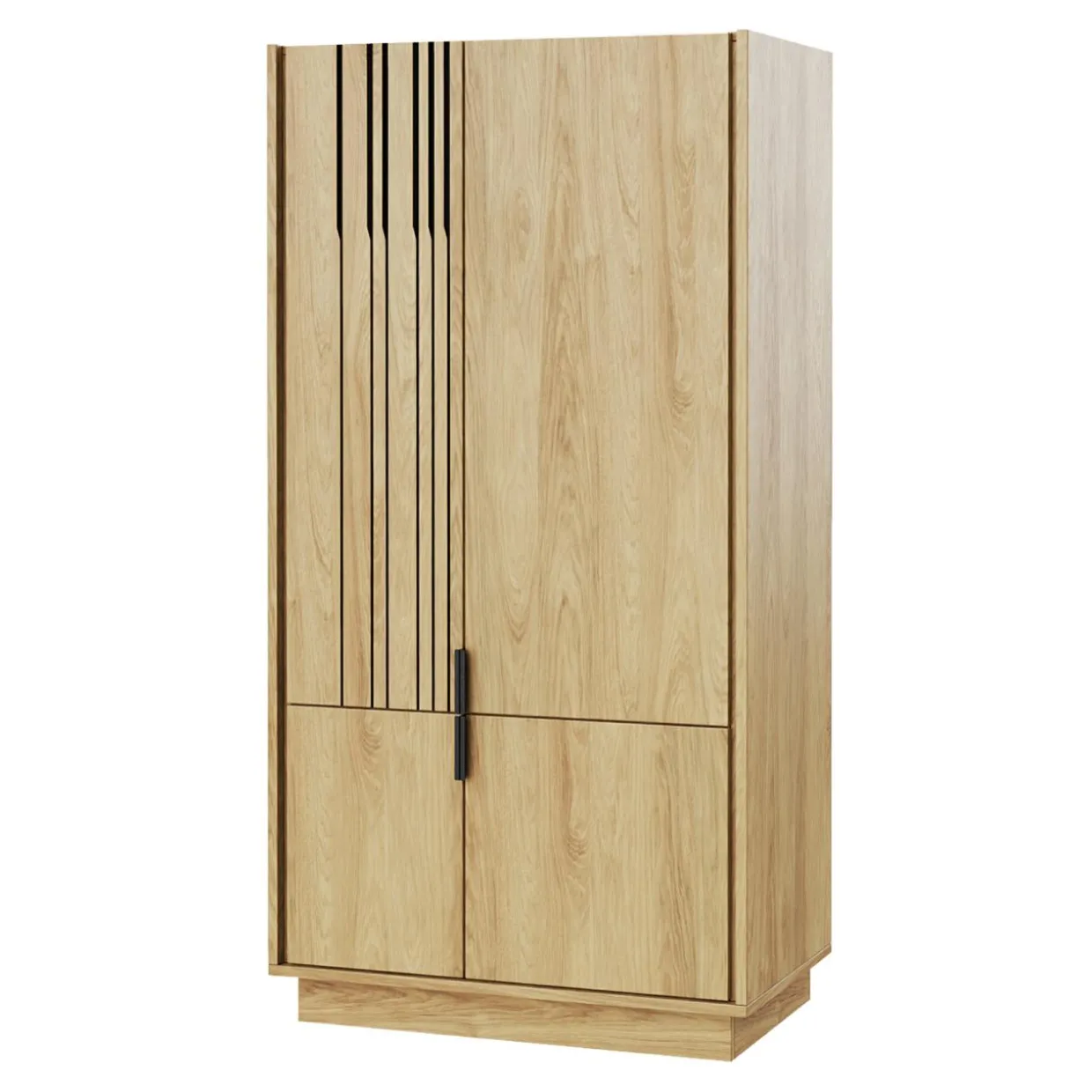 Lamele o nieregularnym rozmieszczeniu oraz wgłębienia w wybranych elementach dodają wyjątkowego wyglądu meblom.