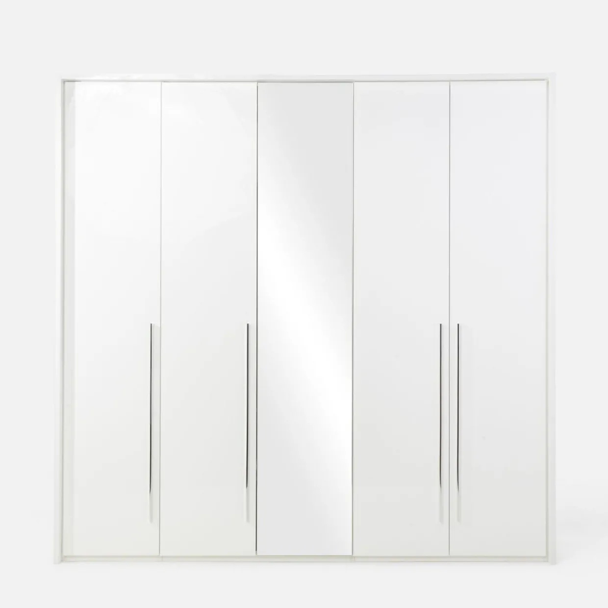 Szafa PIANO z lustrem i listwą okalającą w białym wysokim połysku to stylowy mebel, który łączy elegancję z praktycznością. Jej nowoczesny design i połyskująca powierzchnia nadają wnętrzom przestronności i blasku, idealnie wpisując się w aranżacje nowoczesne, glamour lub minimalistyczne.