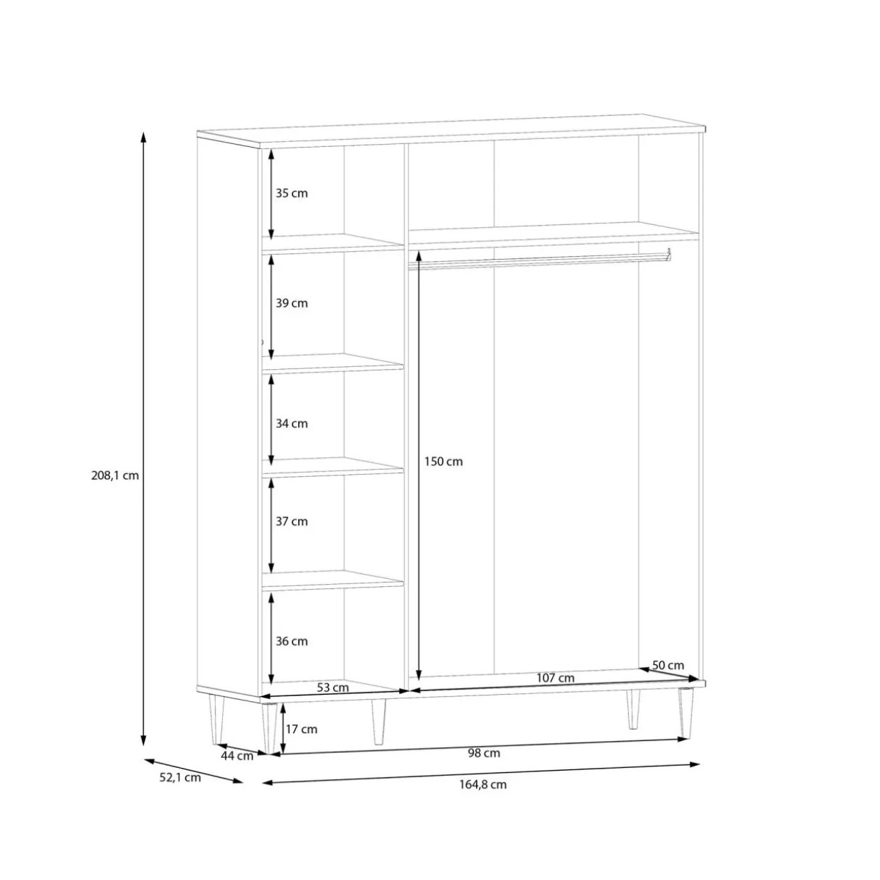 Szafa CALASETTA pomieści wszystkie Twoje ubrania. Poukładaj je na drążku i wnękach. Teraz bez problemu znajdziesz ulubioną koszulkę.