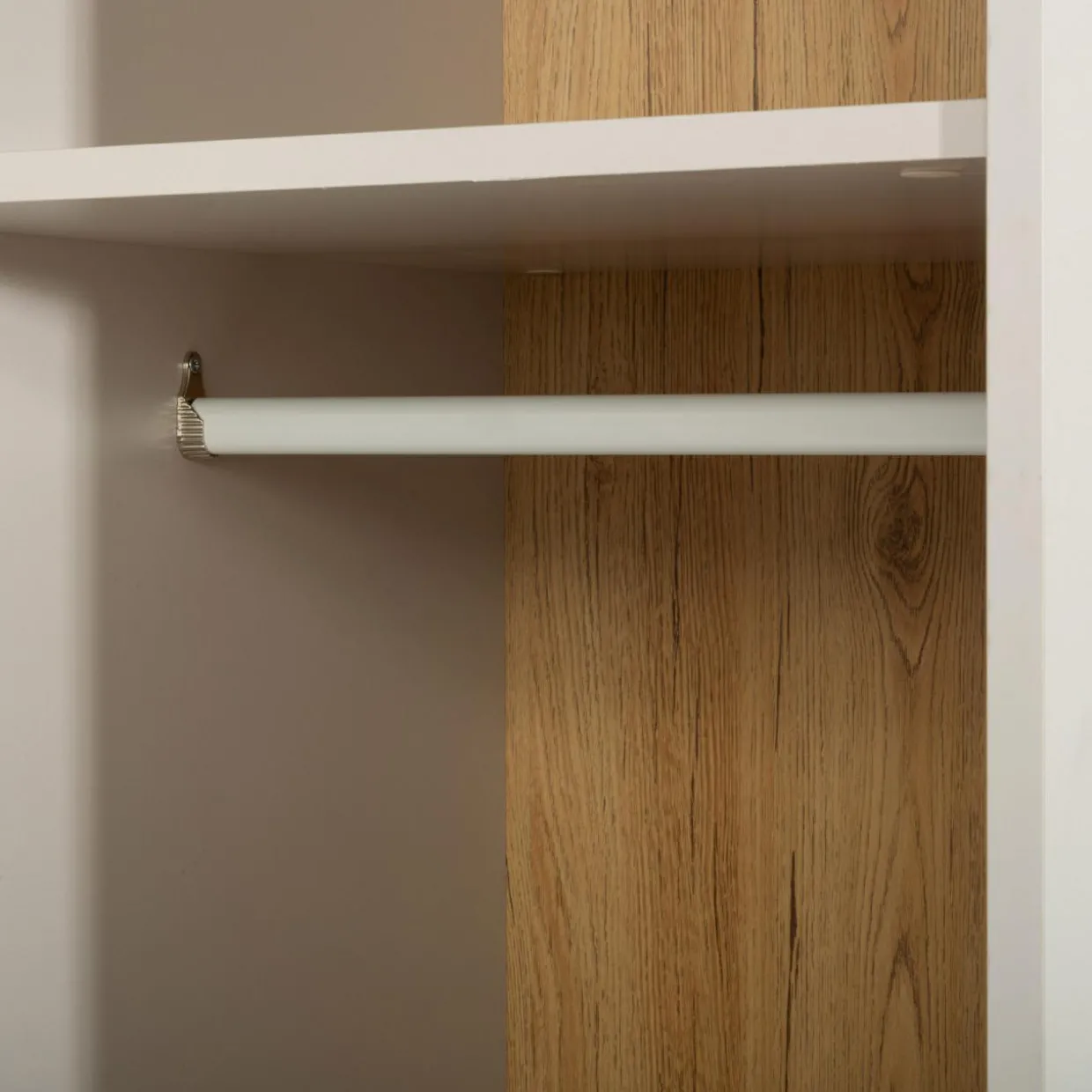 Szafa MAX MODERN II jest pełna półek, w których pomieścisz ubrania, tekstylia i wiele więcej.