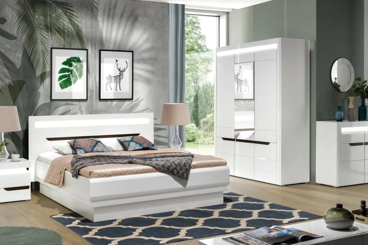 - Szafę wyposażono w system oświetlenia LED, który podkreśla nowoczesny charakter mebla. Rozproszone światło sprawia, że w sypialni panuje przyjemny nastrój.