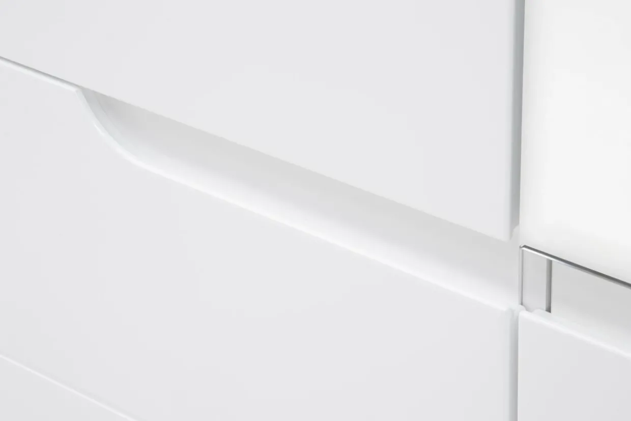 - Połyskujące, białe fronty odbijają światło, wprowadzając do wnętrza odrobinę chłodnego szyku.