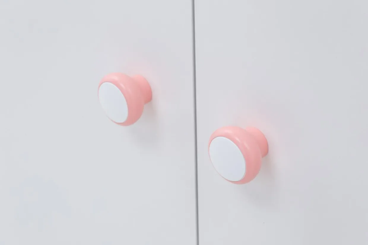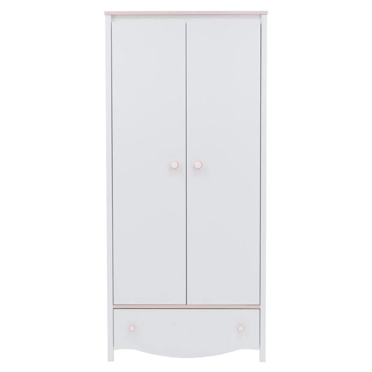 W meblu zamontowano aż dwa drążki do wieszania sukienek, spódnic i tunik. Szafa umożliwia uporządkowanie dużej ilości ubrań, które można poukładać na czterech pojemnych półkach. Miejsca na dziewczęce bibeloty nie zabraknie, dzięki pojemnej szufladzie na bieliznę i dodatki, umieszczonej w dolnej części szafy.