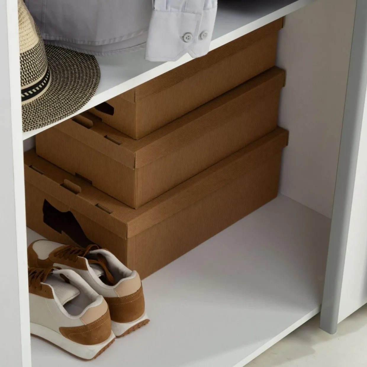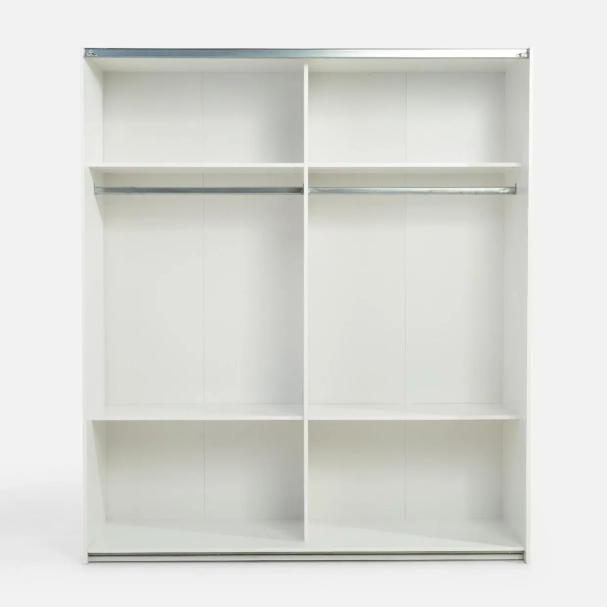 - Przemyślane wnętrze – głębokie półki oraz przestrzeń na wieszaki pomieszczą ubrania, pościel lub inne niezbędne przedmioty, co ułatwi organizację.
