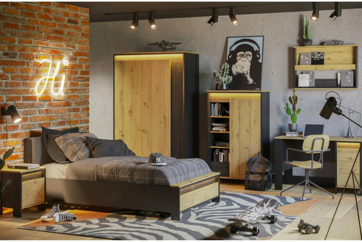 - Meble SPOT to propozycja dla wymagających nastolatków, którzy marzą o aranżacji pokoju w nieco tajemniczym klimacie z elementami stylu industrialnego.