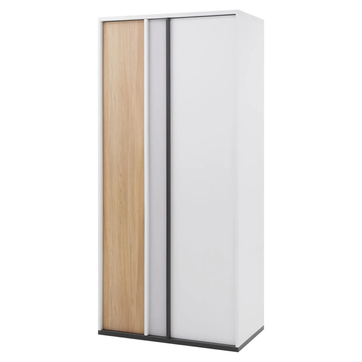 Szafa dwudrzwiowa IMOLA kryje w sobie 1 drążek na ubrania oraz 1 dużą półkę.