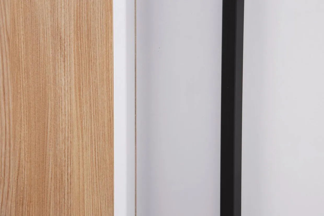 - Połączenie 3 kolorów to mieszanka koloru szarego przypominającego surowy beton, bieli oraz dębu.