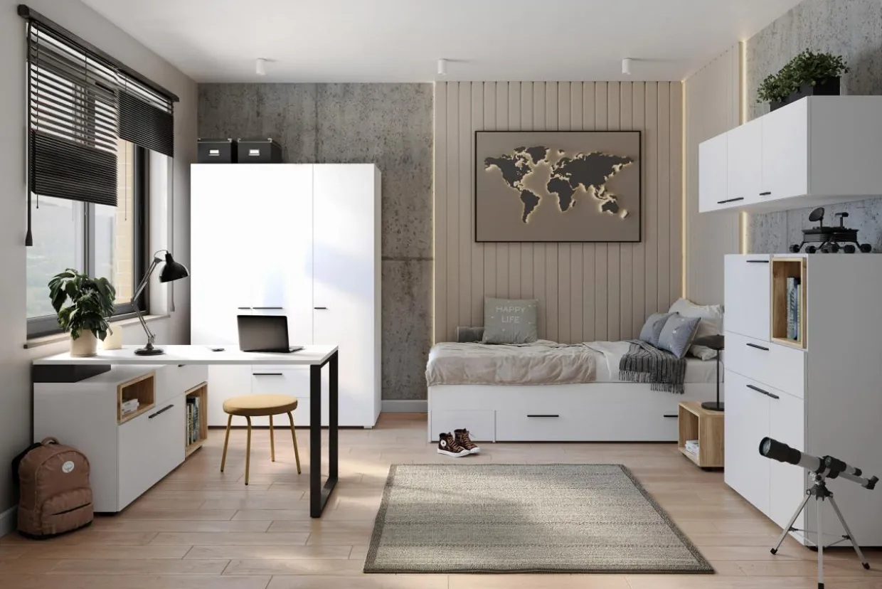 MARLOW będzie świetnym rozwiązaniem do pokoju młodzieżowego. Meble sprawdzą się również w domowy gabinecie lub sypialni jednoosobowej.