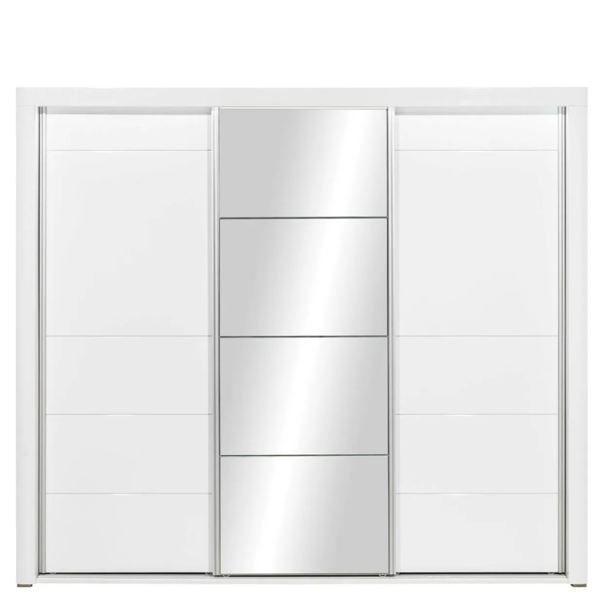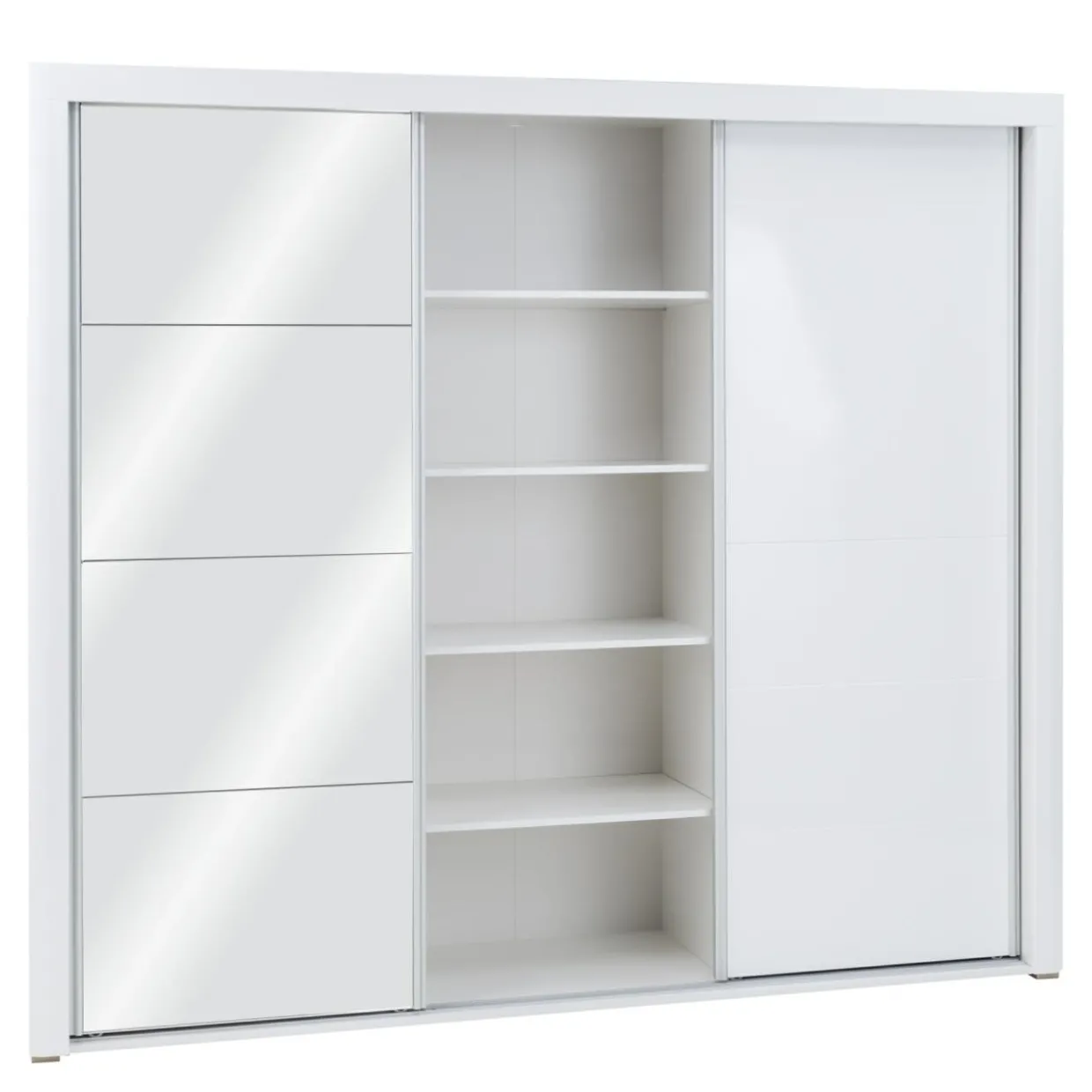 - Fronty szafy wykończono folią z połyskiem, dzięki czemu meble prezentują się elegancko i powiększają optycznie przestrzeń.
