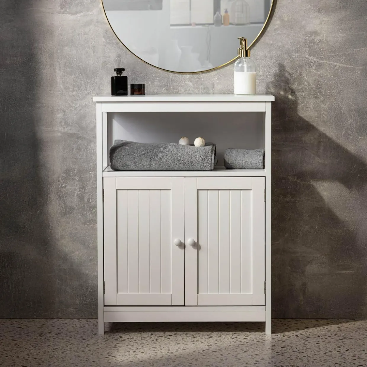 Szafka łazienkowa PARLA świetnie uzupełni małą, prowansalską łazienkę. Białe wykończenie i fronty w formie ramki z wypełnieniem z desek nadadzą swojskiego klimatu.
