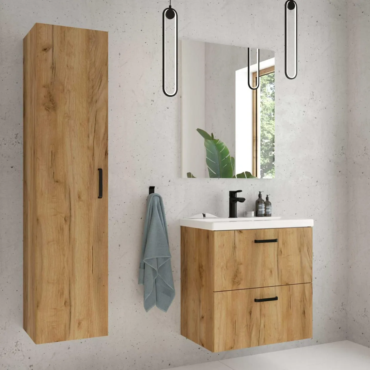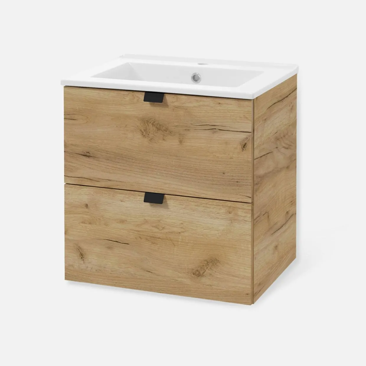 Szafka JOY posiada wbudowaną umywalkę — dzięki temu z łatwością utrzymasz porządek w łazience.