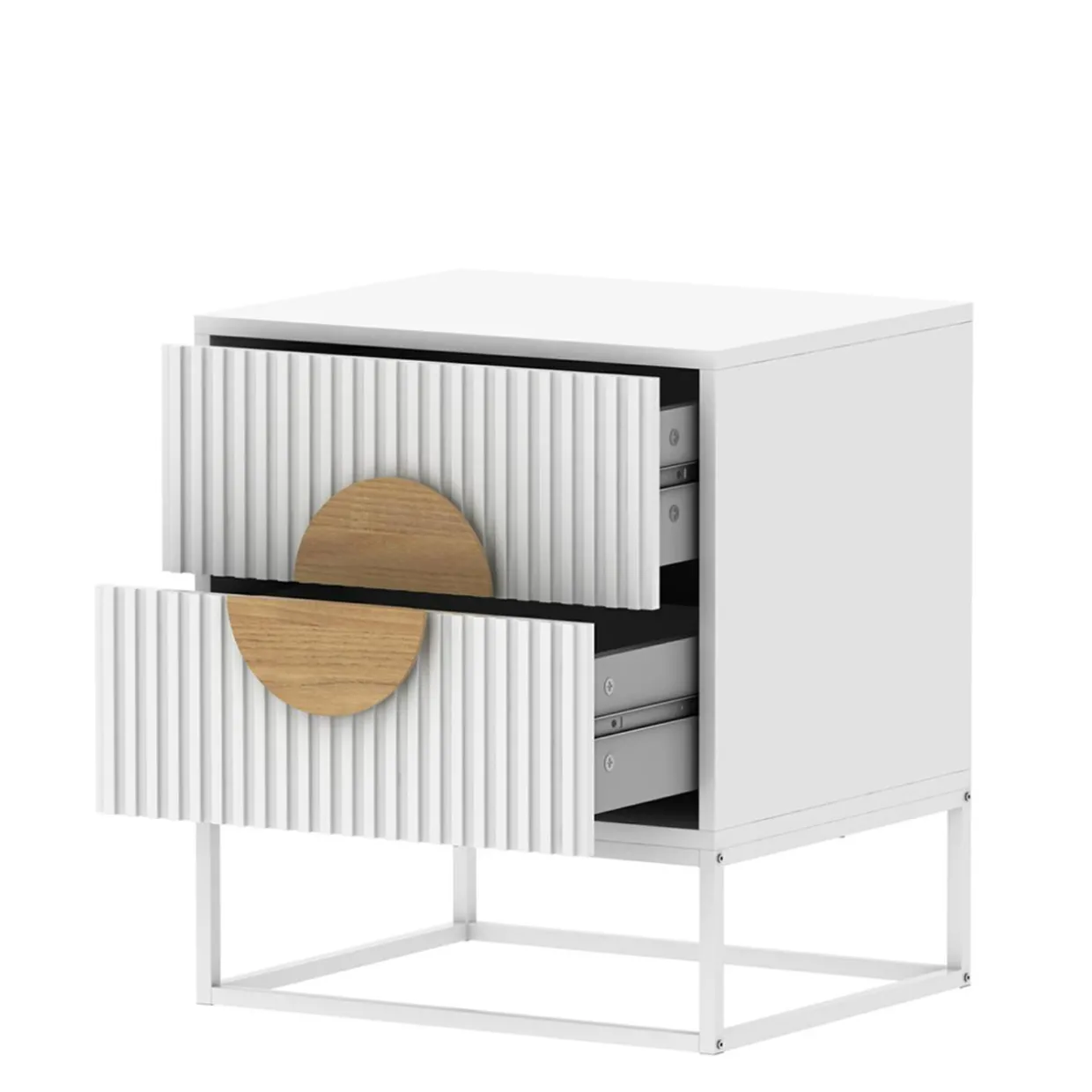 - Do wnętrza szuflady dostaniesz się dzięki półokrągłym uchwytom.