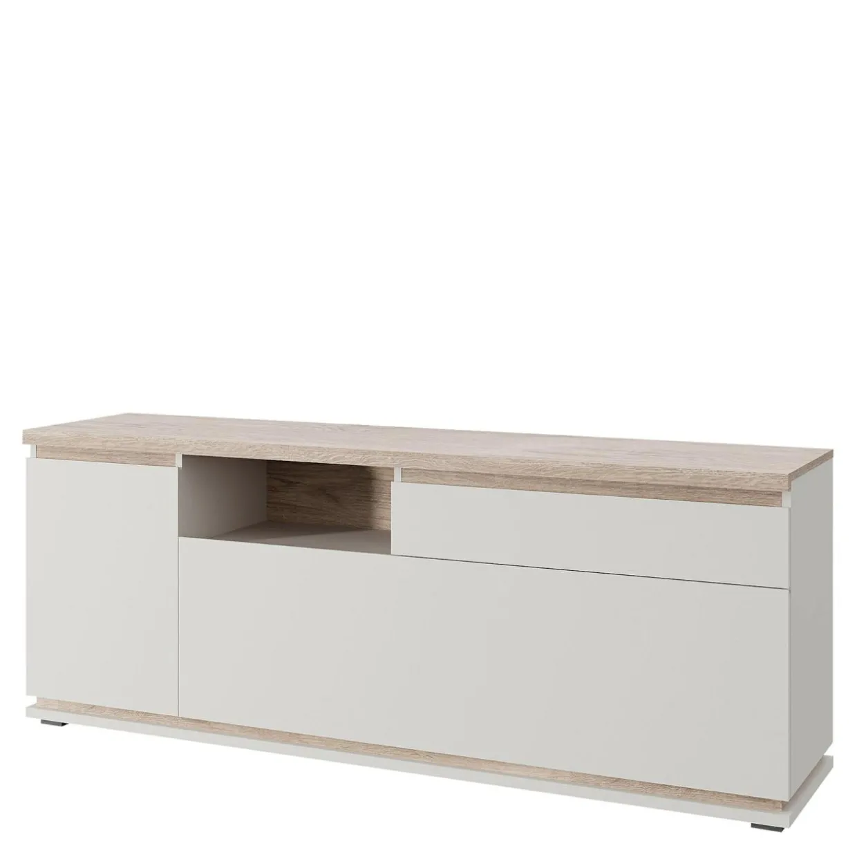 - Meble zostały wykończone w dwóch odcieniach: jasnoszarej perskiej perle i dębie madura. Wybarwienie będzie pasować do nowoczesnych salonów i jadalni.
