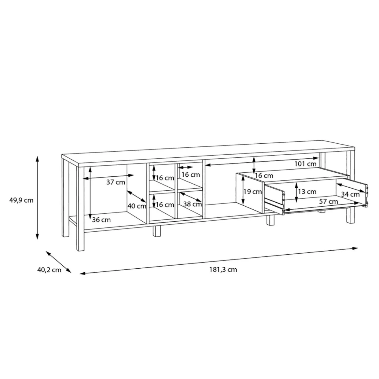 - Szafka posiada otwarte wnęki, w których bezpiecznie umieścisz dekoder czy konsolę.