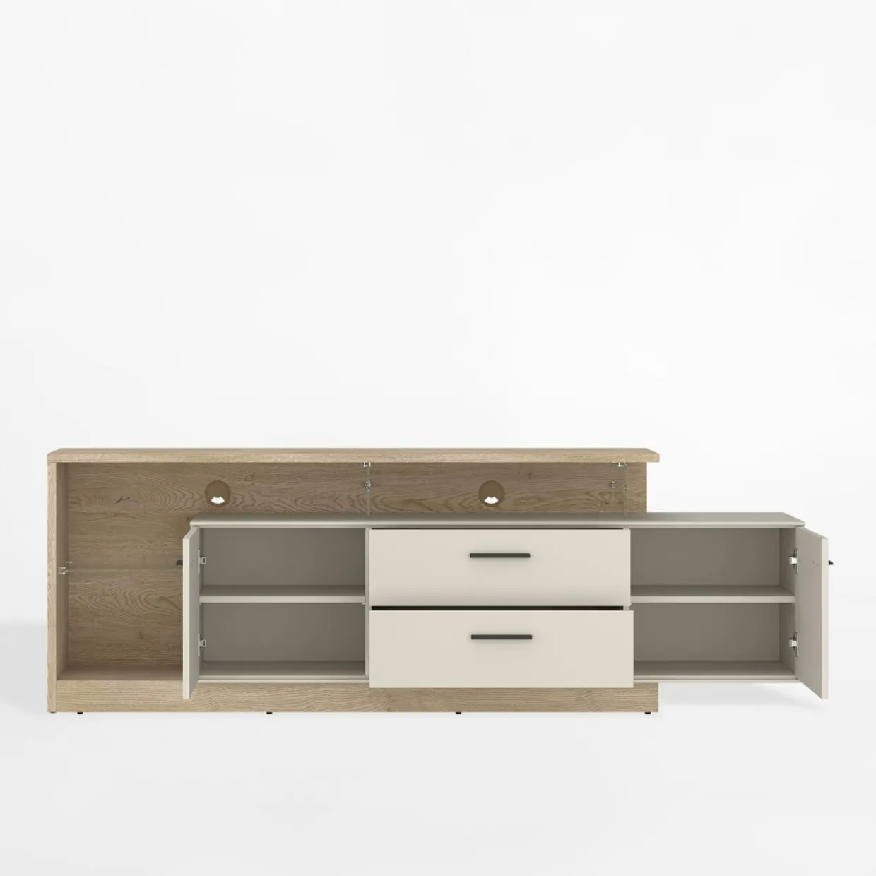 - Przestronny blat – szeroki na 191,5 cm, idealny na telewizor i dekoracje, takie jak rośliny czy zdjęcia.