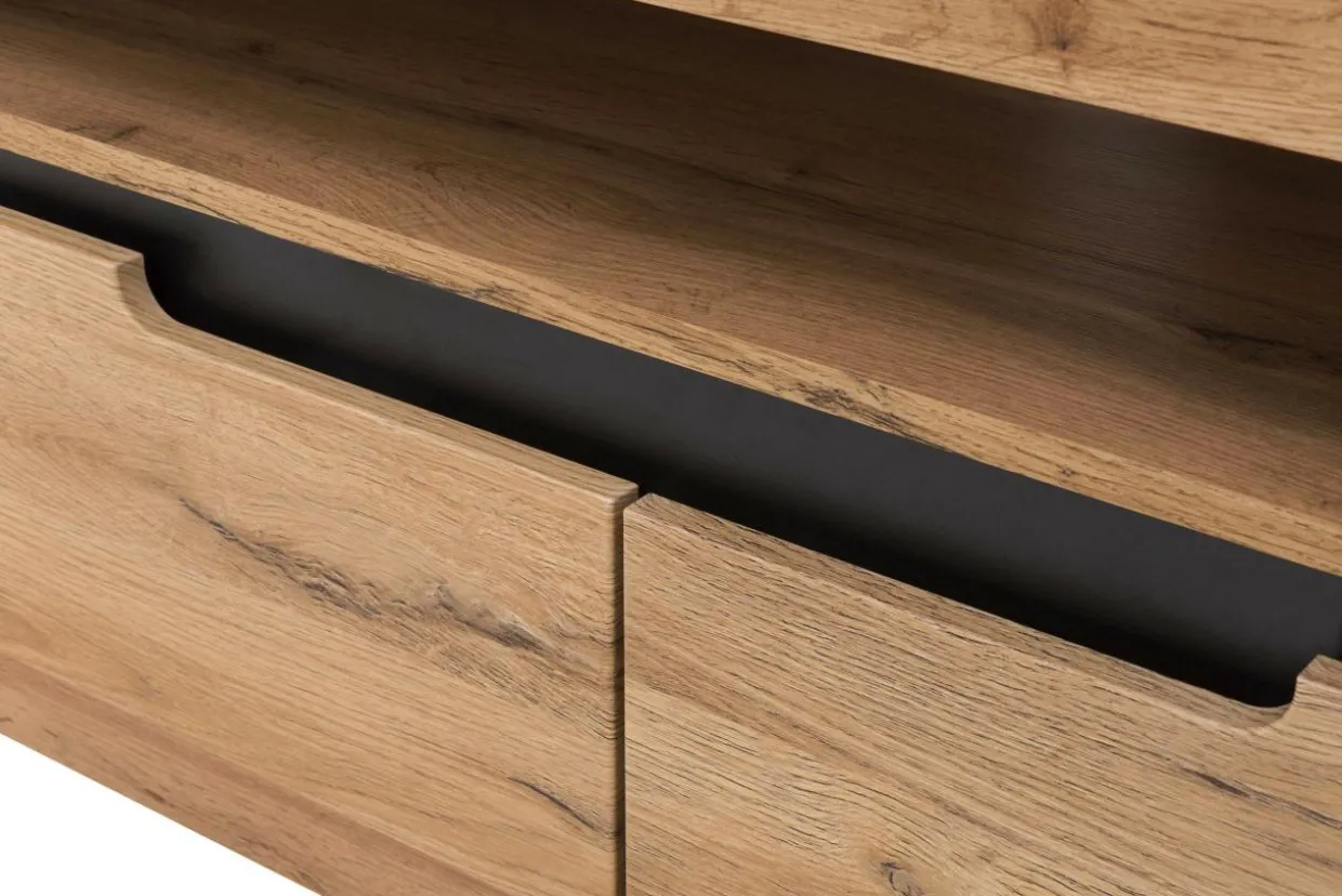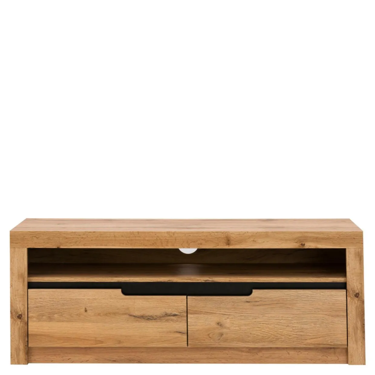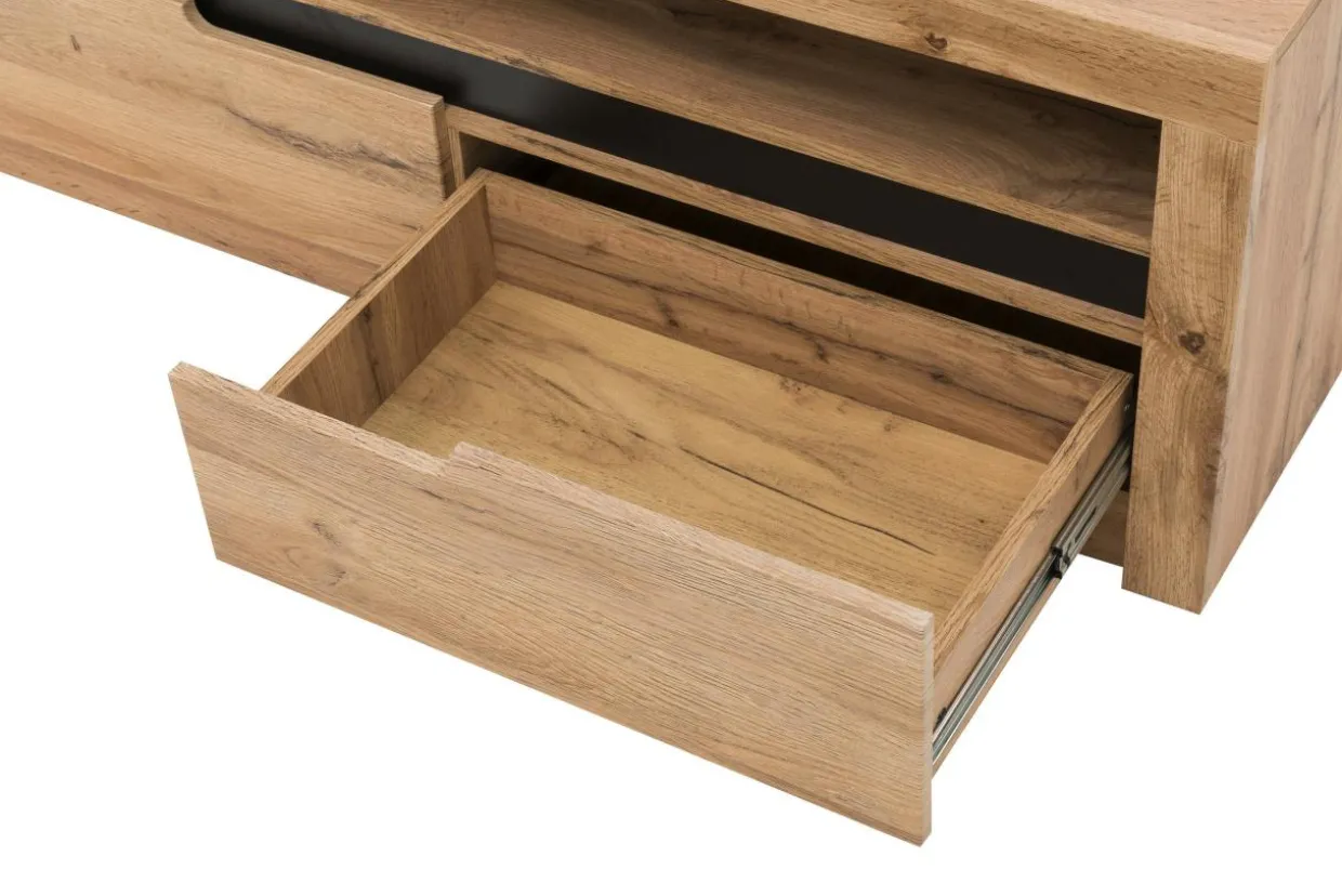 W szerokiej wnęce zmieścisz zarówno dekoder, jak i konsolę. Szafka posiada 2 pojemne szuflady, które przydadzą się na płyty DVD i na akcesoria. Wymiar wnęki: 53,4 cm x 33,4 cm x 11,0 cm