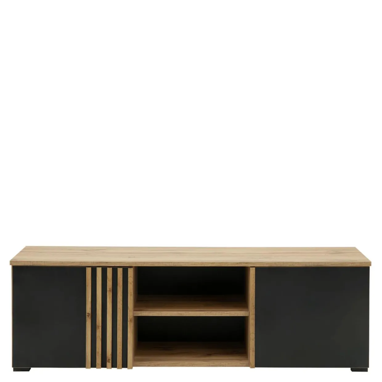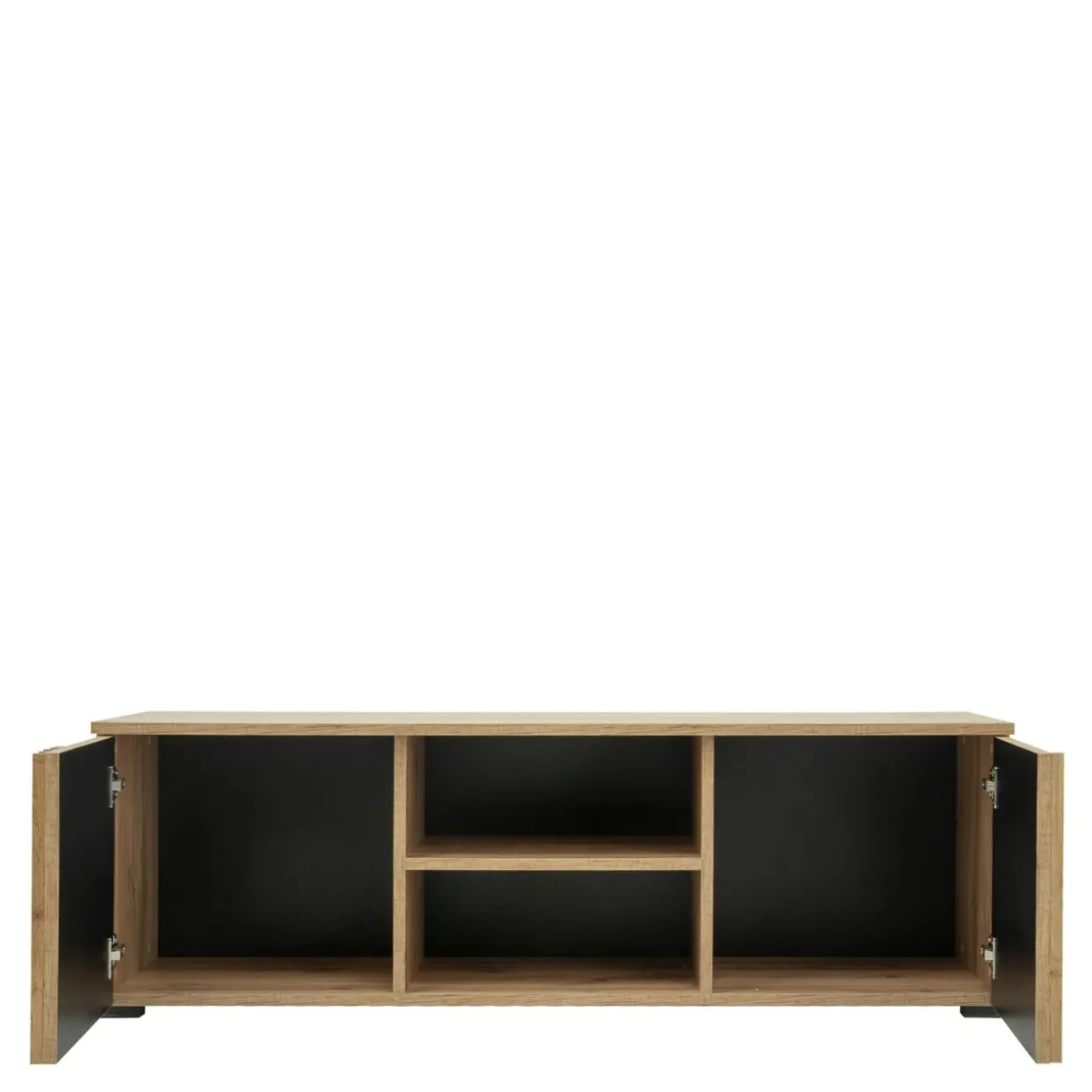 - 2 otwarte półki – to miejsce na konsolę lub dekoder. Możesz też na nich położyć książki albo ulubione czasopisma.