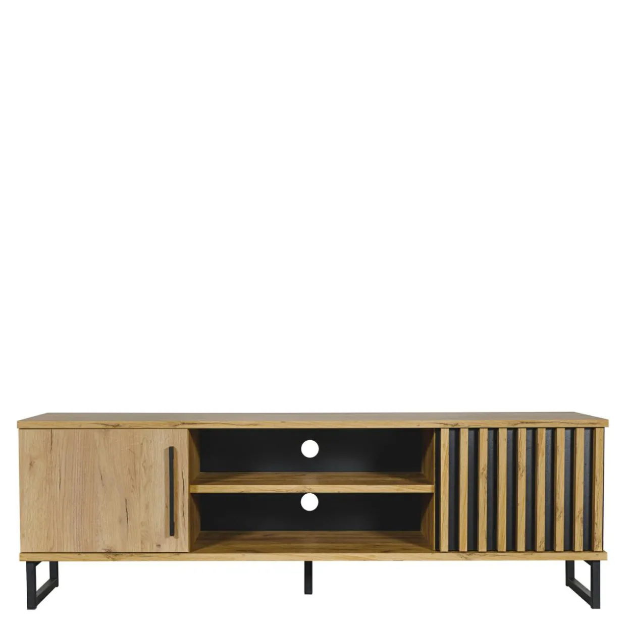 W otwartych wnękach pomieścisz dekoder oraz odtwarzacz DVD. Kable przeciągniesz przez niewielkie otwory w tylnej zabudowie – będą niewidoczne, a Ty zachowasz codzienny porządek.