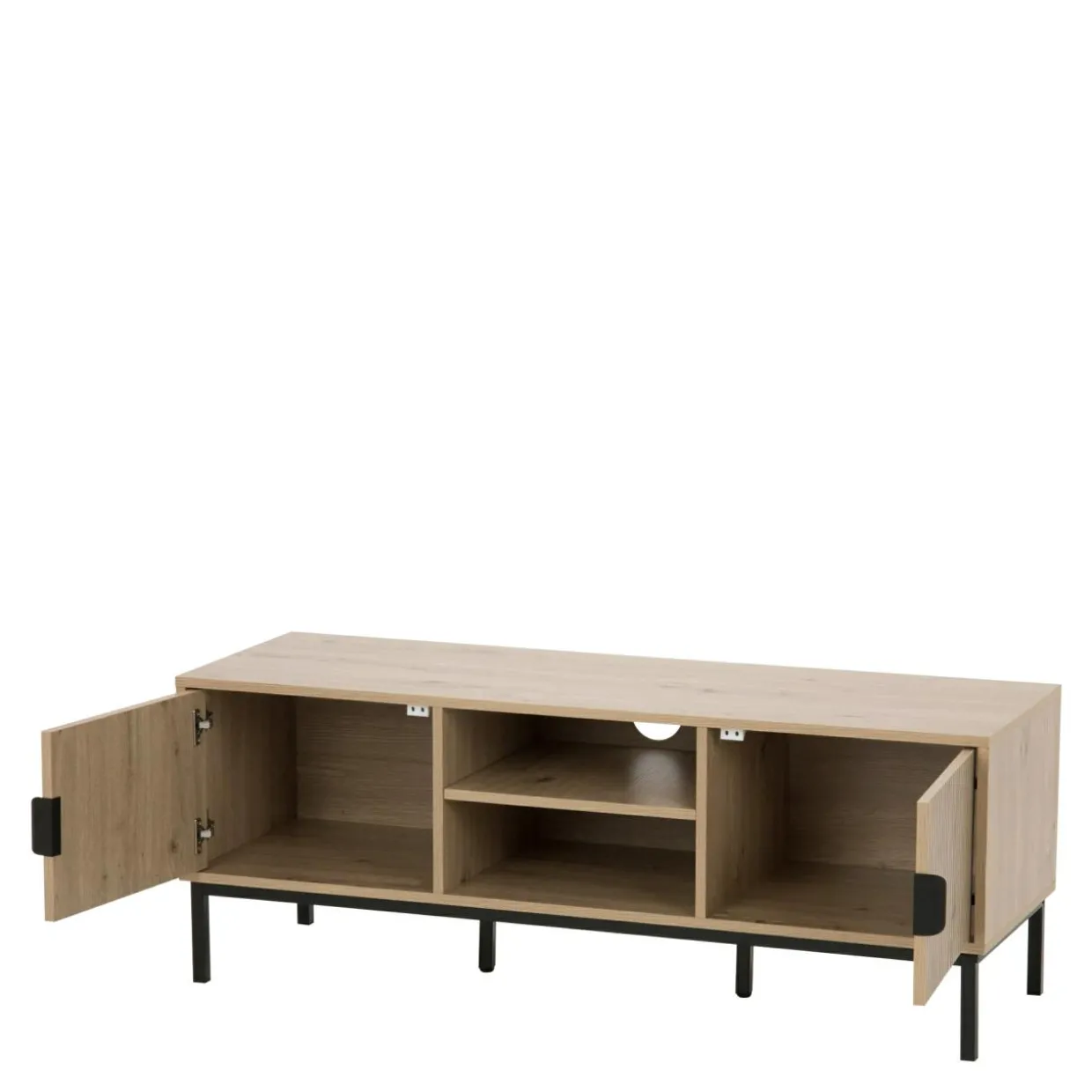 - Szafka RTV posiada 4 wnęki, w tym 2 schowane za zamykanymi drzwiami, w których umieścisz filmy DVD, zapasowe kable i instrukcje obsługi urządzeń.