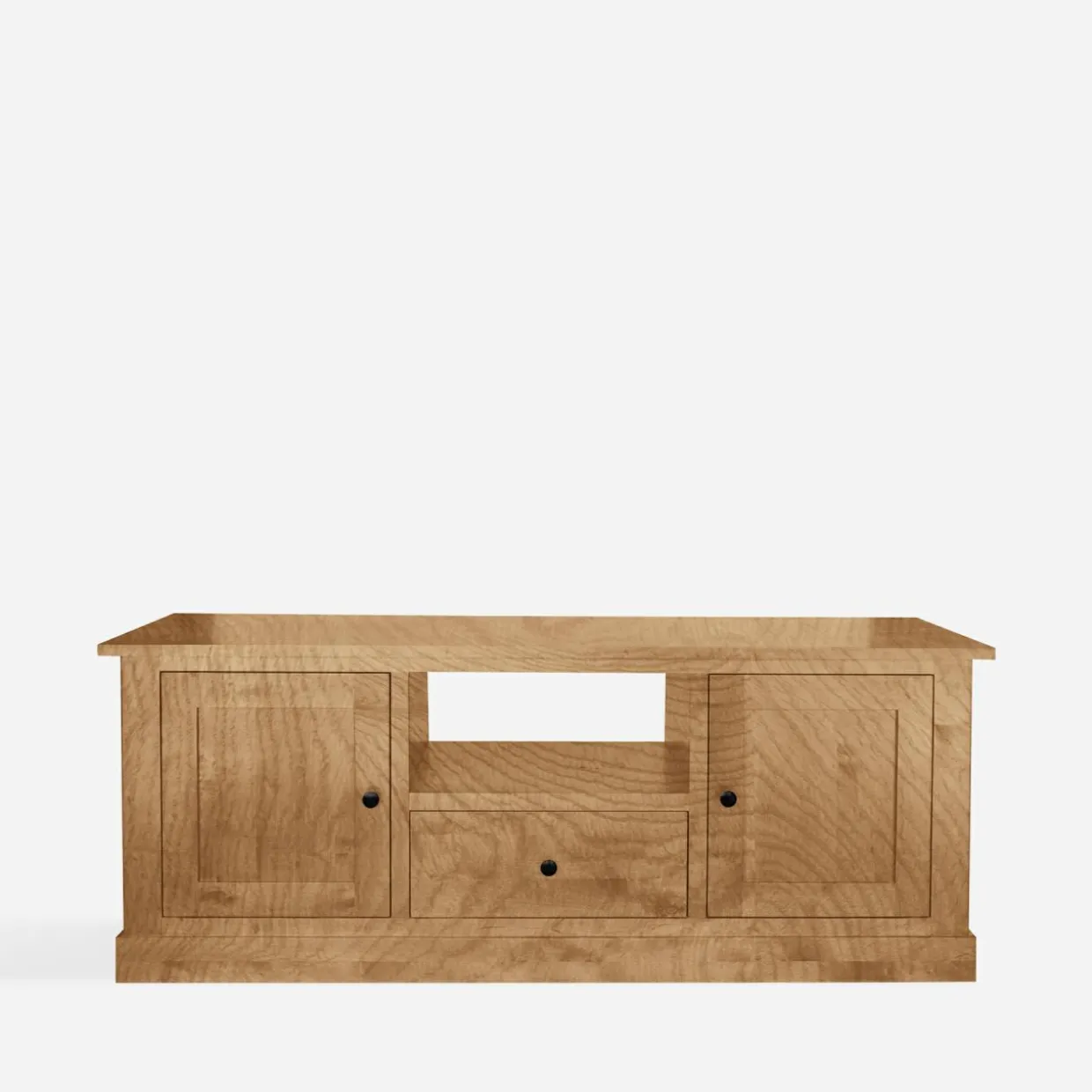 Szafka RTV STELLA to praktyczny mebel wykonany z litego drewna w kolorze dąb naturalny. Dzięki szerokości 150 cm i przemyślanemu układowi przechowywania, doskonale sprawdzi się w salonie jako miejsce na sprzęt RTV oraz dodatkowe akcesoria.