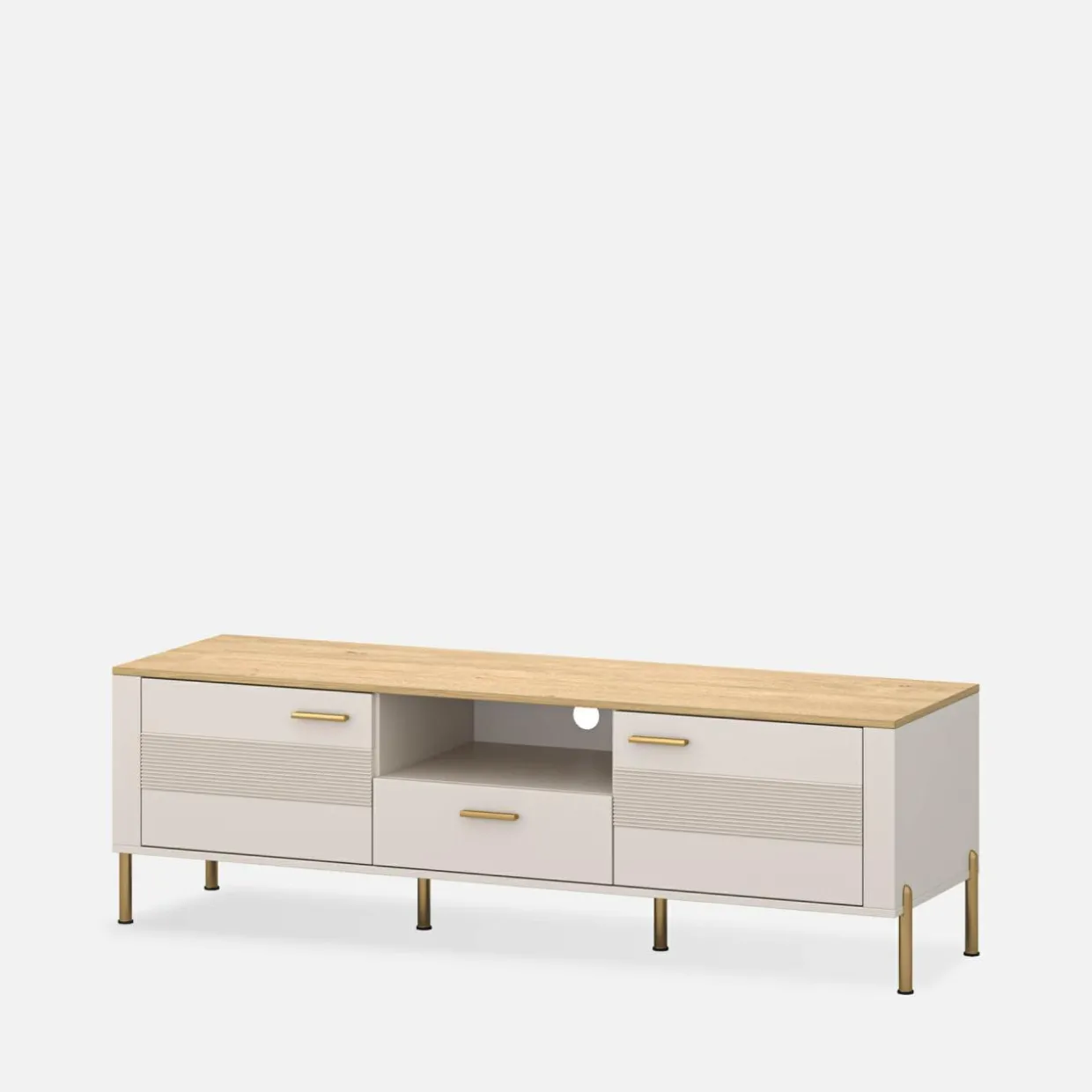- Na blacie postawisz dekoder, router i konsolę do grania. Gdy zabraknie miejsca na sprzęt do telewizora, wykorzystaj otwartą wnękę o wysokości 17 cm.