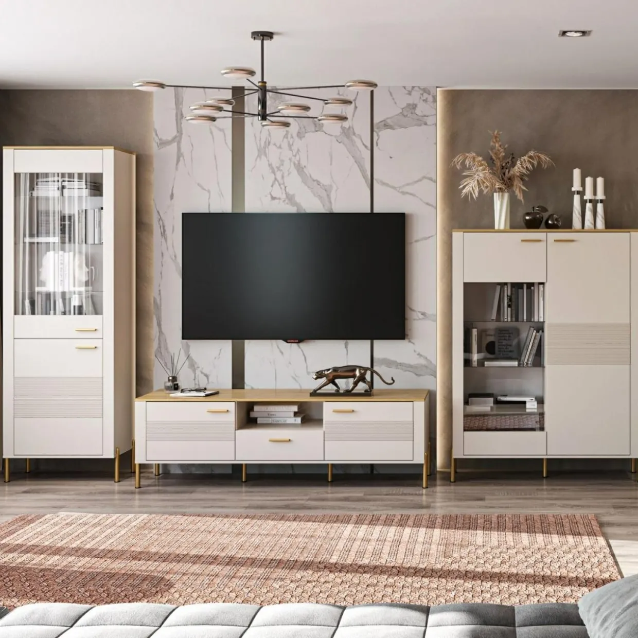 - Złote elementy dopełniają mebel, dodając nuty klasy i szyku.