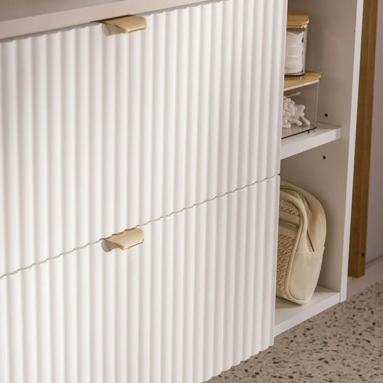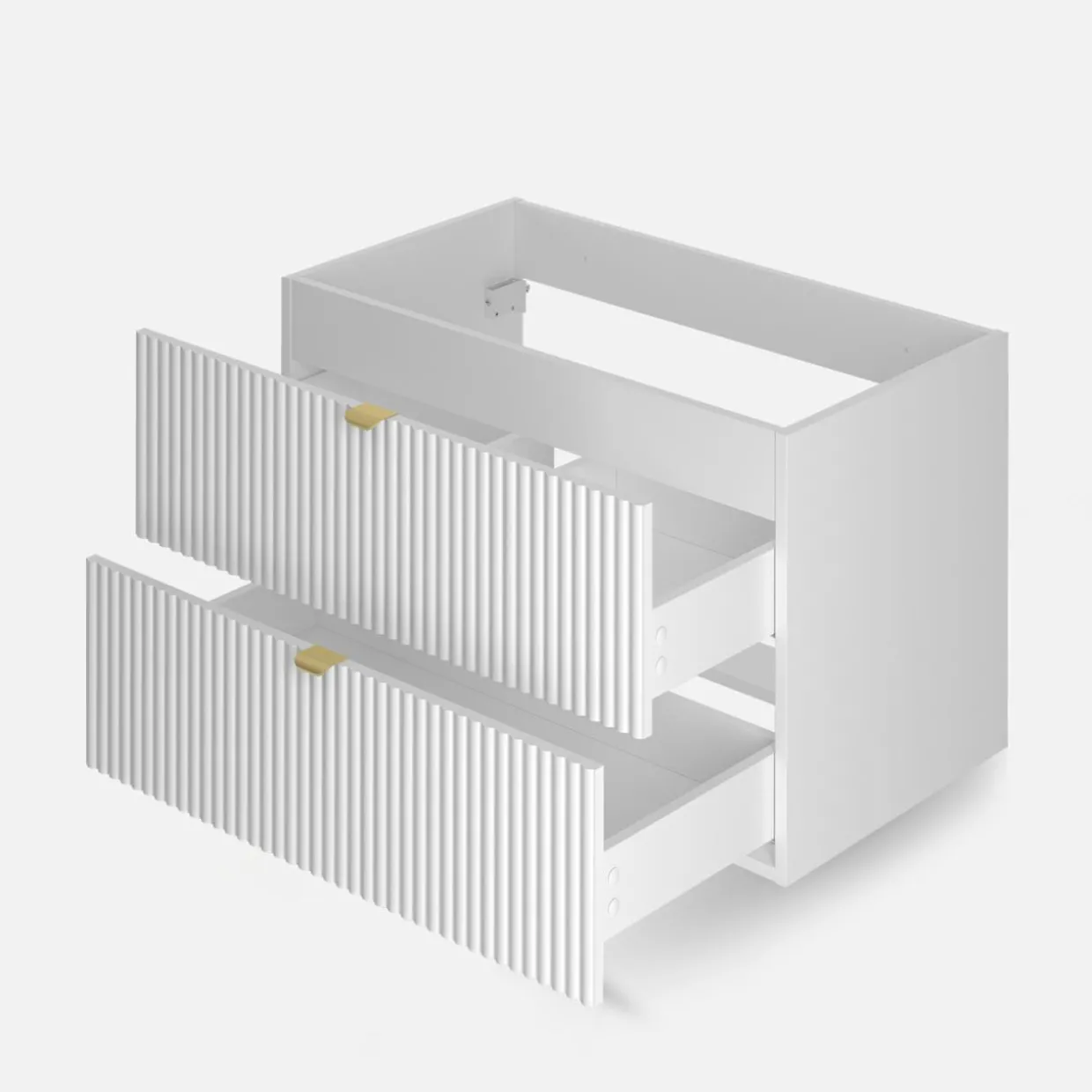 Z szafką umywalkową BELT nie zabraknie miejsca na akcesoria do łazienki. Suszarkę, żele pod prysznic i kosmetyki schowasz w 2 szufladach.