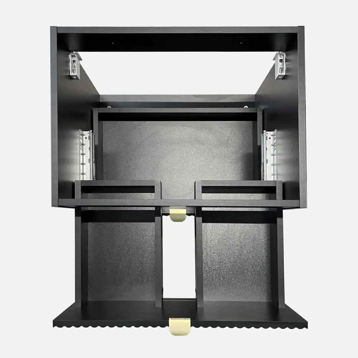 - W górnej szufladzie podzielonej na 2 części uporządkujecie z partnerem swoje kosmetyki.