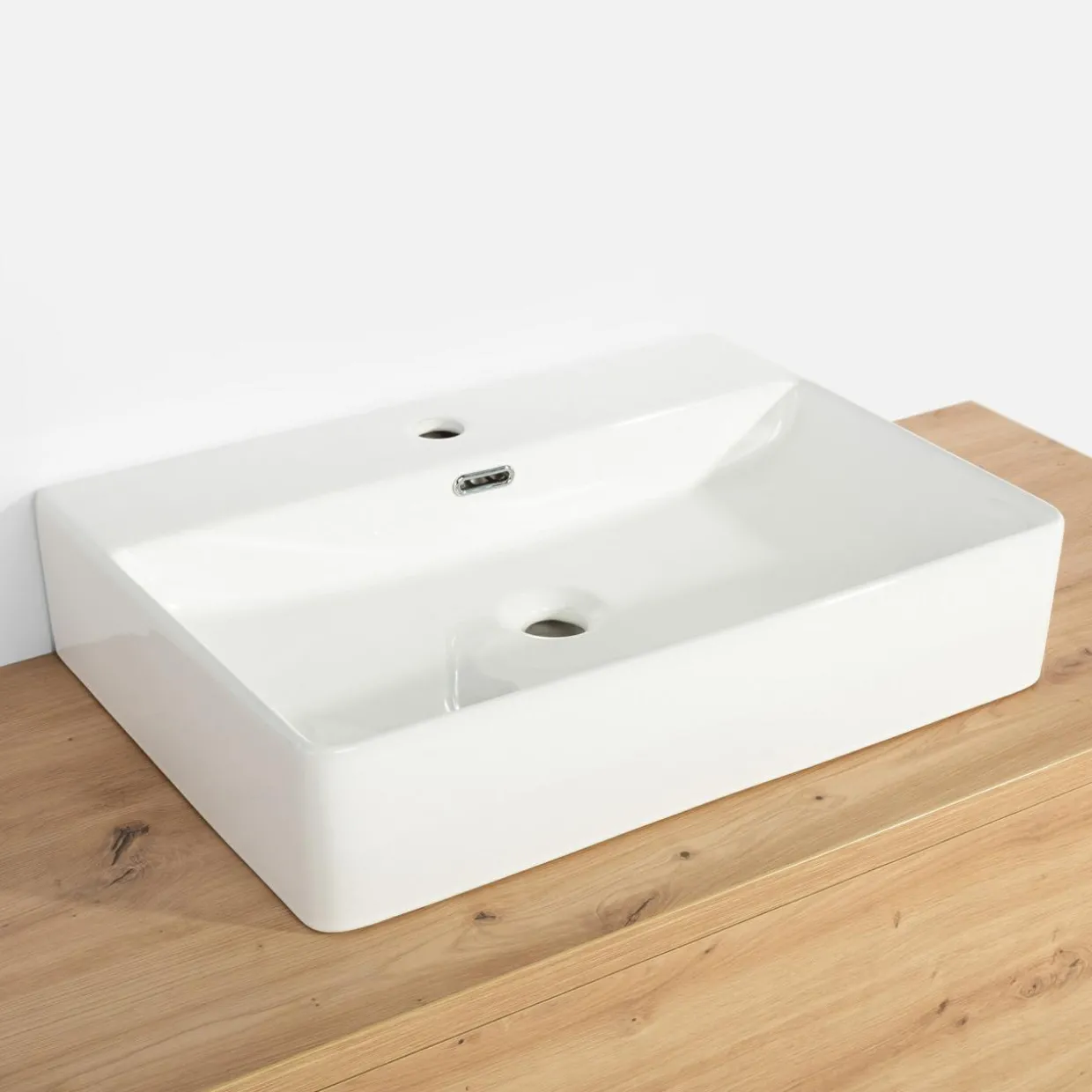 - Miejsce na umywalkę znajduje się w centralnej części blatu, grubego na 30 mm.