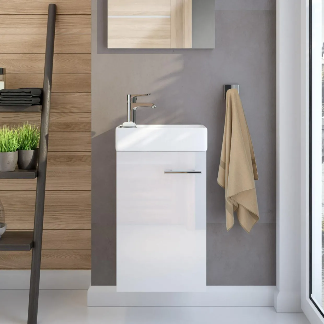 Szafka z umywalką biała KIM 40 cm + JOKO bateria umywalkowa
