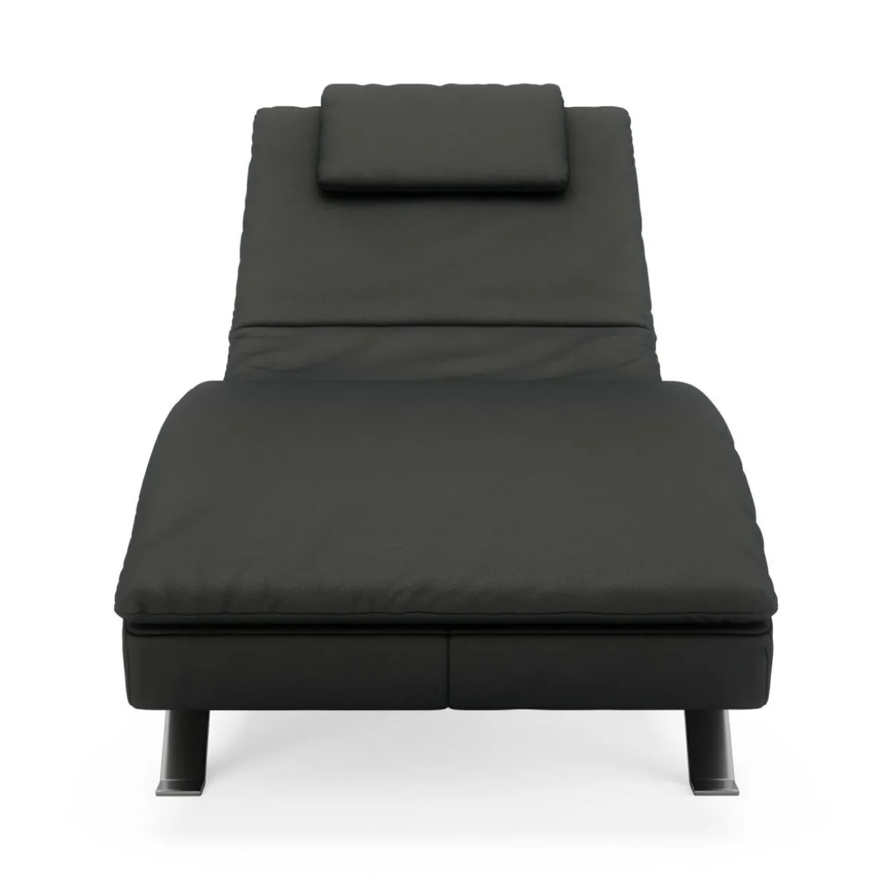 Tapicerka wykonana jest z eleganckiej i grubej skóry naturalnej DOLLARO NERO i obszyta nicią pod kolor. Szare nóżki malowane metodą proszkową świetnie dopełniają całości i podkreślają modernistyczny charakter mebla.