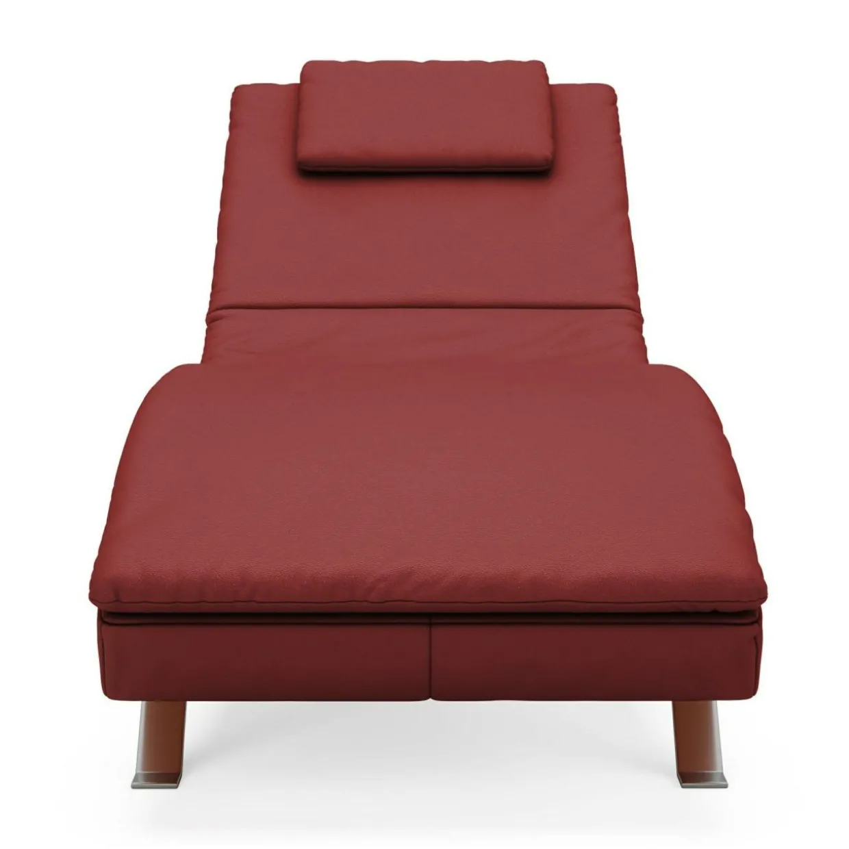 Szezlong w całości obity jest czerwoną skórą naturalną z wyrazistym tłoczeniem typu dollaro.