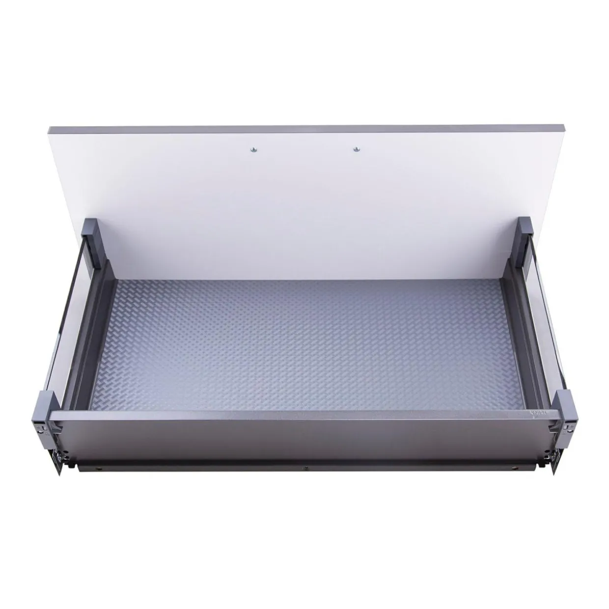 MINI BOX różni się od standardowej szuflady głębokością – dedykowany jest do płytkich korpusów w miejscach, gdzie nie możesz zastosować głębokich szuflad.
