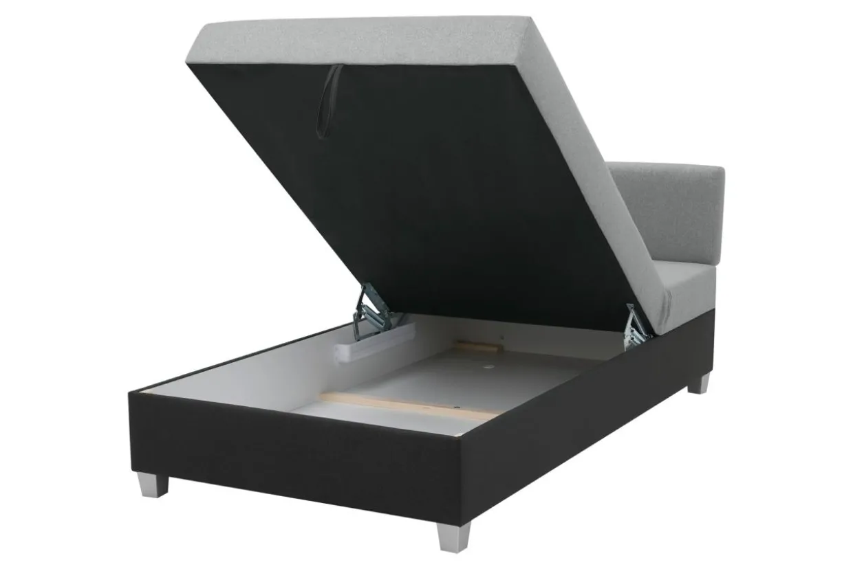 Tapczan wykorzystuje mechanizm stosowany w łóżkach kontynentalnych: aby otworzyć pojemnik pociągnij w górę za materiałowy pasek.