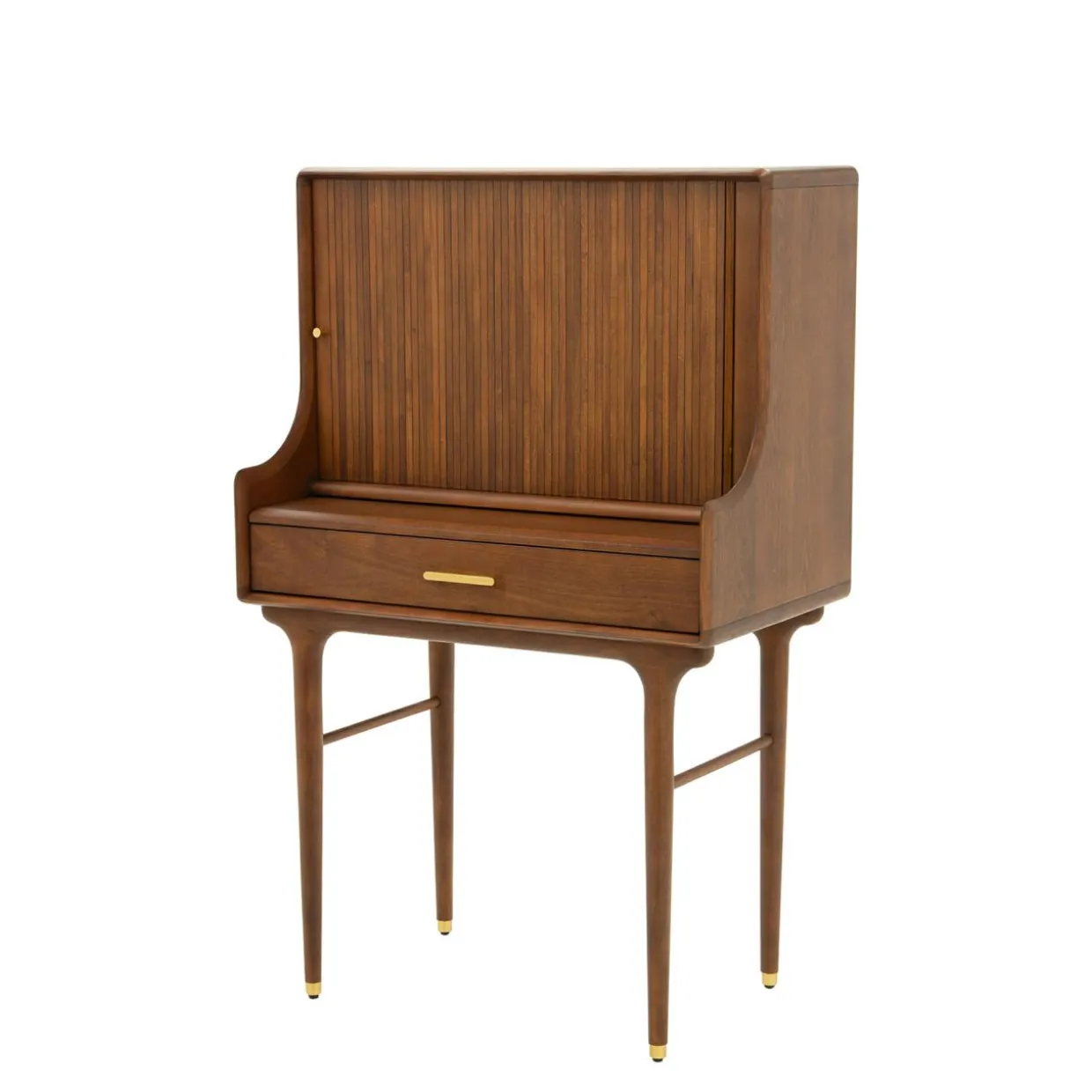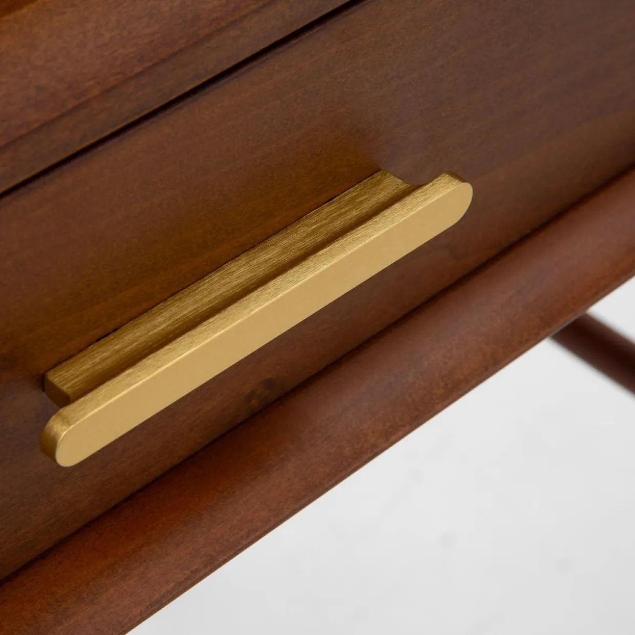Minimalistyczne akcenty z mosiądzu w postaci uchwytów i końcówek nóżek podkreślają jakość wykonanych mebli.