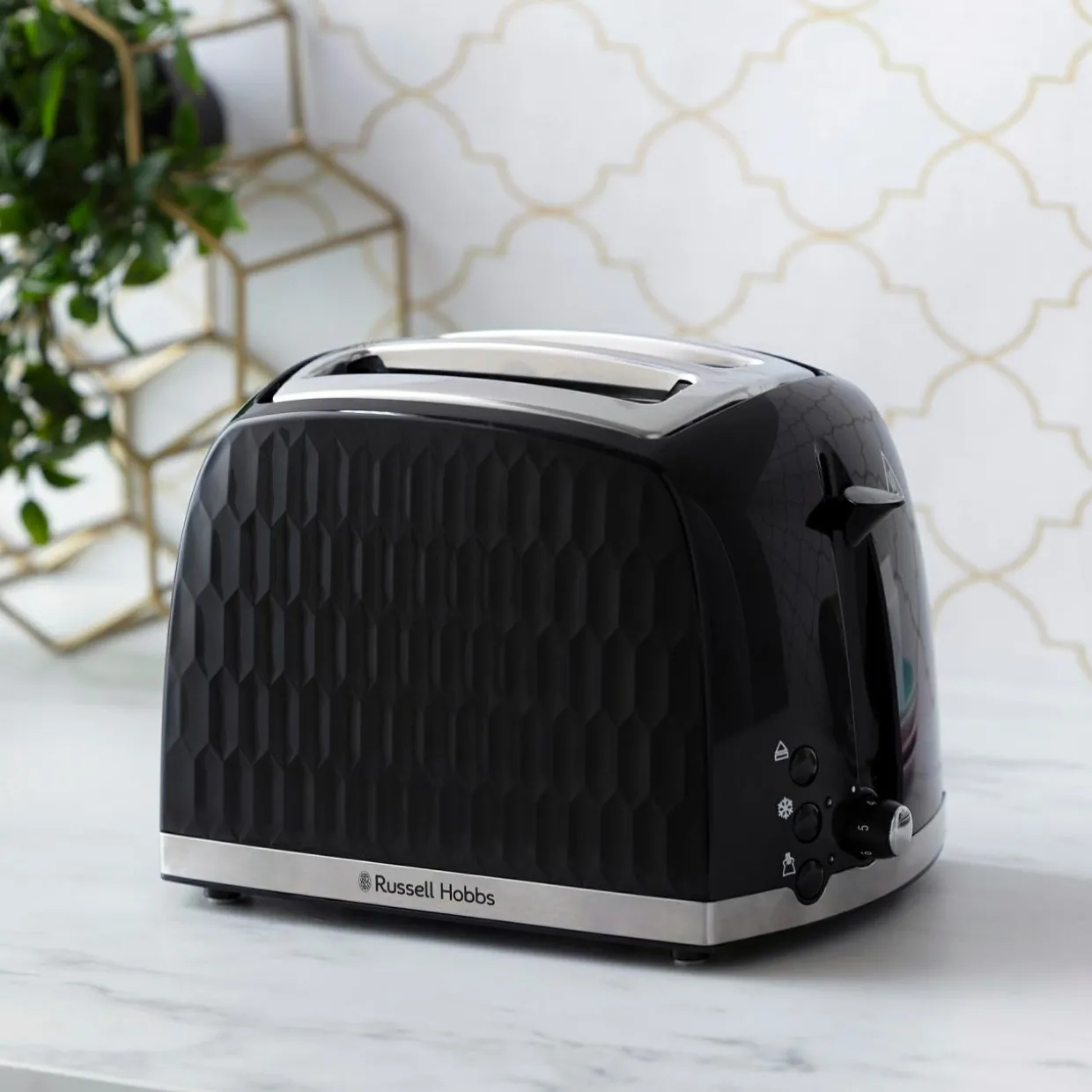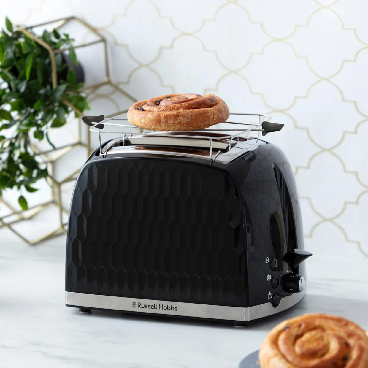 Dodaj swojej kuchni wyjątkowy akcent dzięki tosterowi z 2 szczelinami HONEYCOMB z czarnym wykończeniem o strukturze plastra miodu. Zapewnij sobie idealne tosty każdego ranka w stylowy sposób!