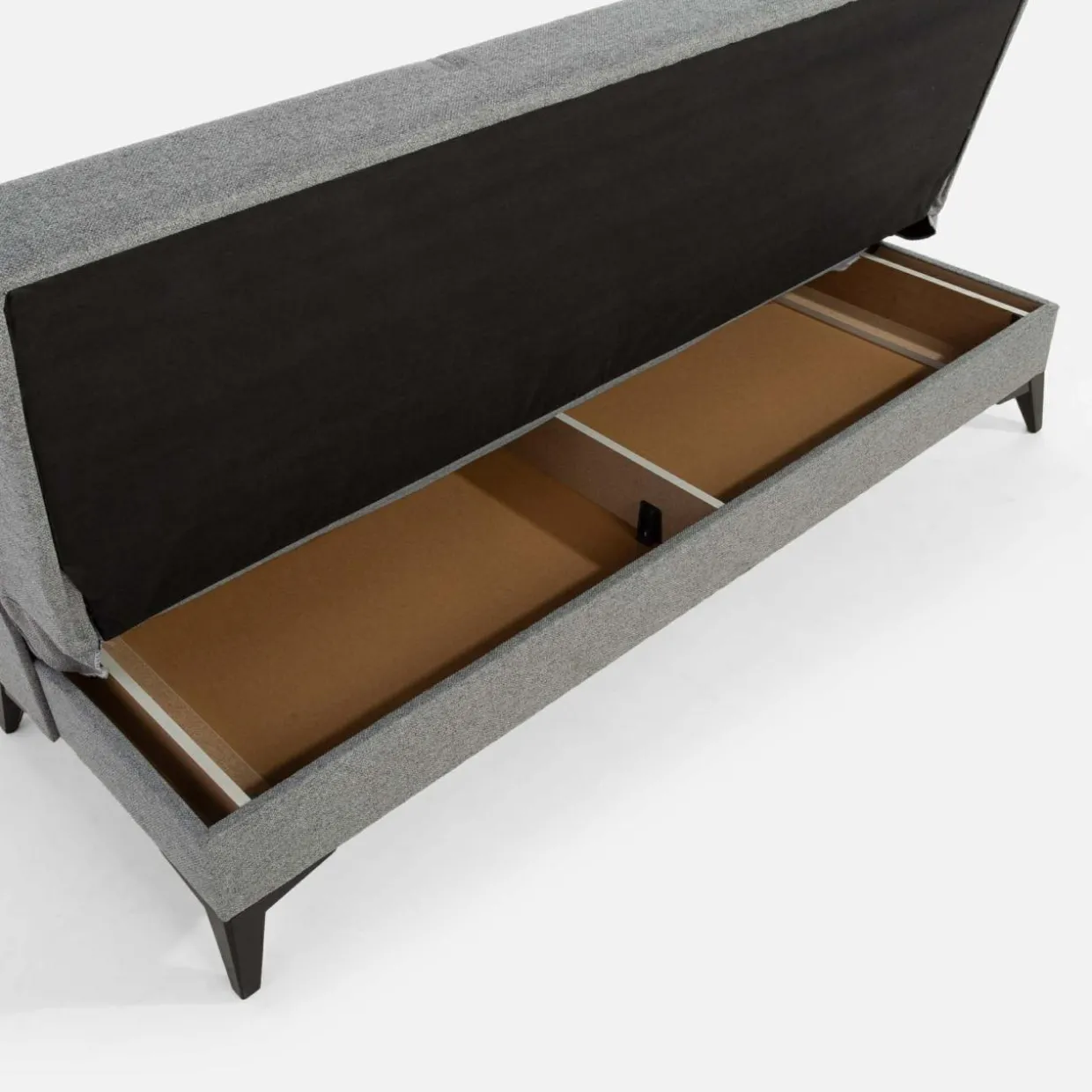 - Pojemnik pod siedziskiem to dodatkowa przestrzeń, w której schowasz pościel i inne domowe tekstylia.