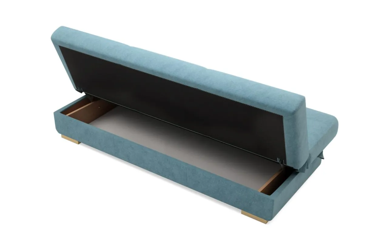 Pod siedziskiem znajdziemy pojemnik na pościel.