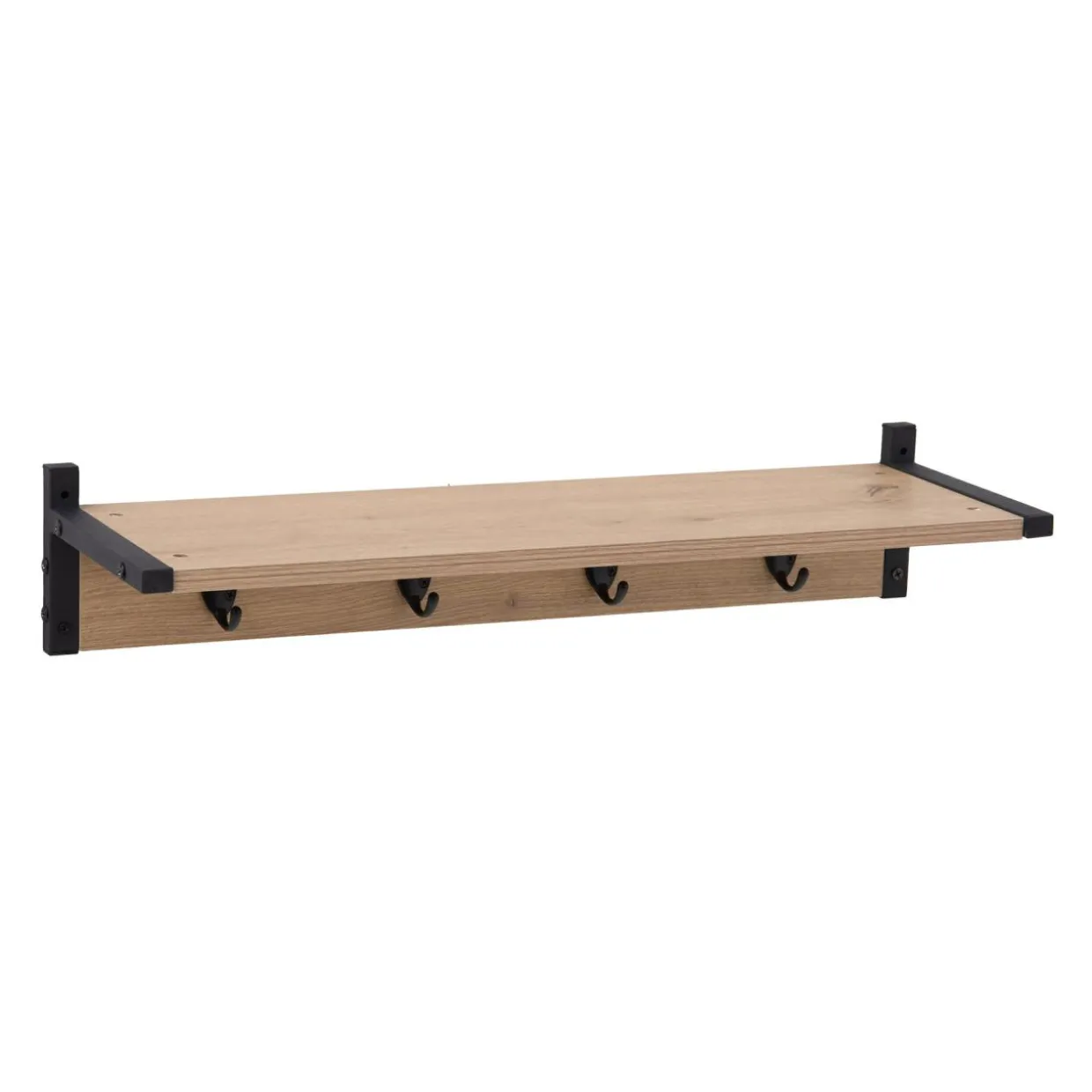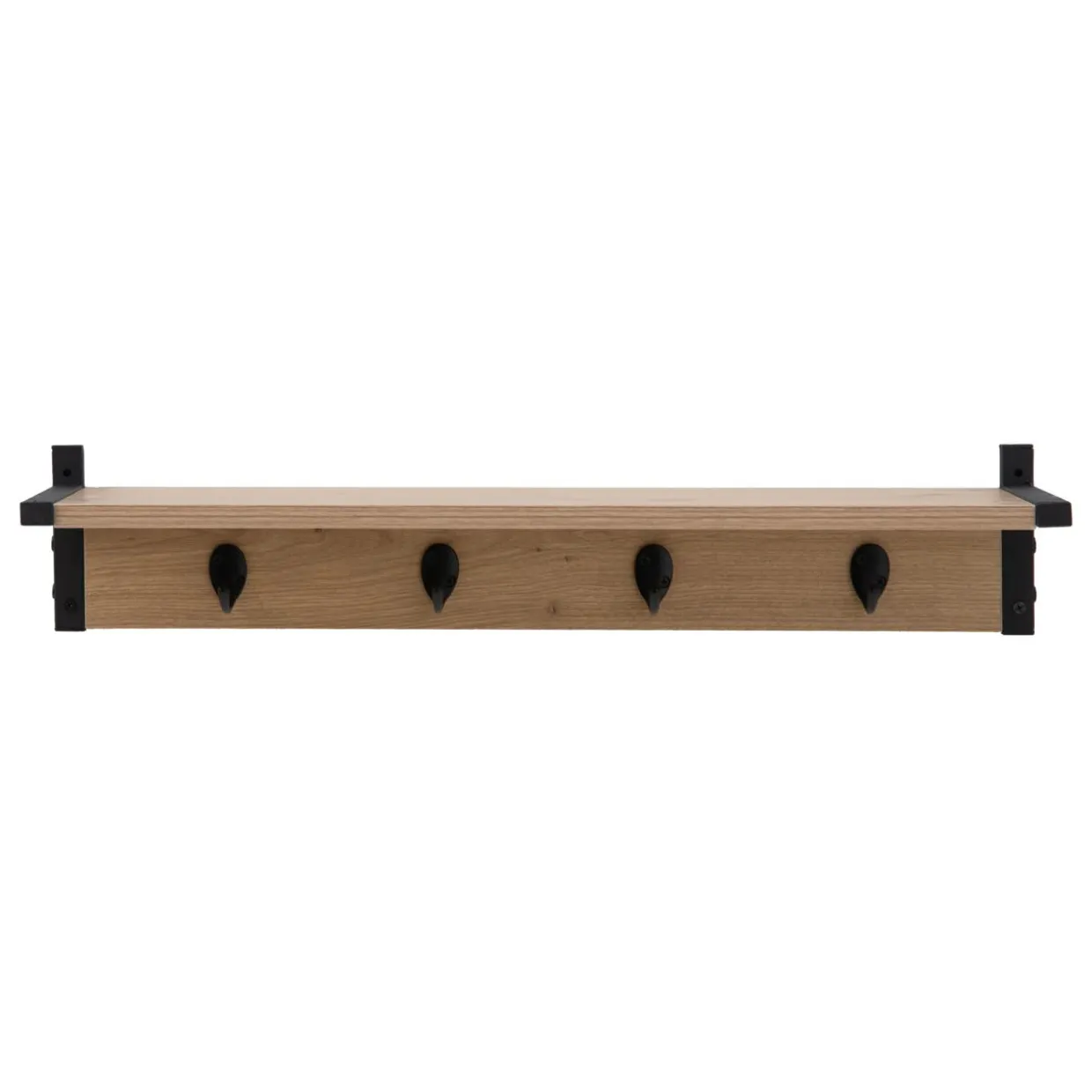 Korpus wieszaka wykończony jest okleiną drewnopodobną. Rysunek słojów i sęków przypomina naturalne drewno dębowe.