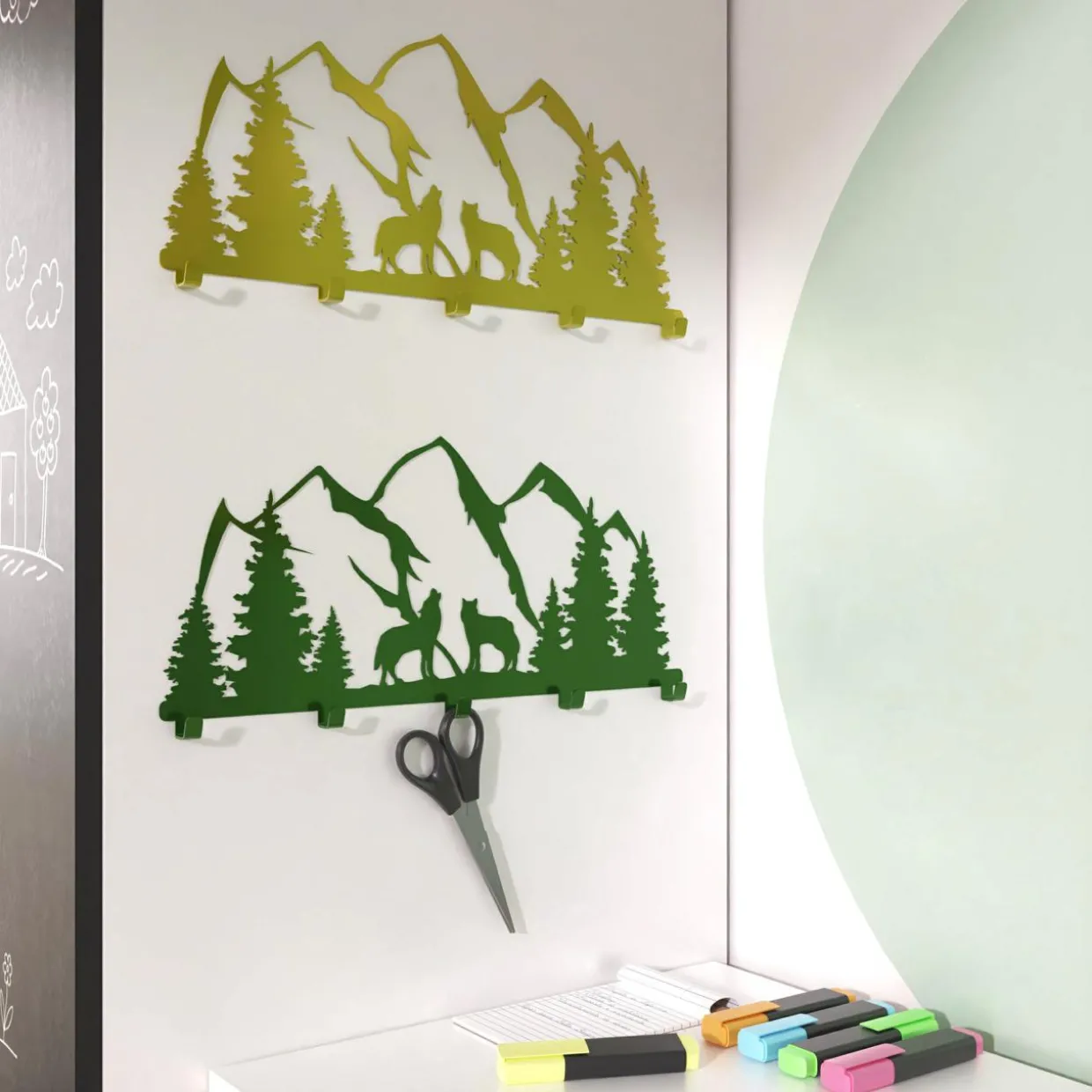 Ozdobny, żółty wieszak GÓRY jest częścią kolekcji KIDDON ADBOX – mebli modułowych, przeznaczonych specjalnie do pokoju naszej pociechy.