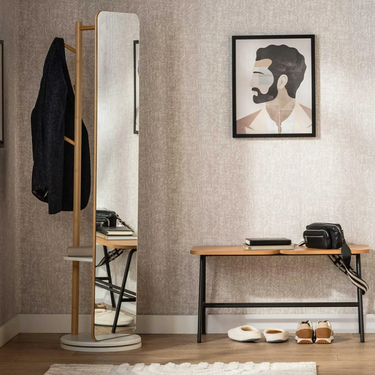 Wieszak PALERMO od przodu posiada długie lustro. Przed wyjściem wygodnie przejrzysz się i sprawdzisz ubiór,