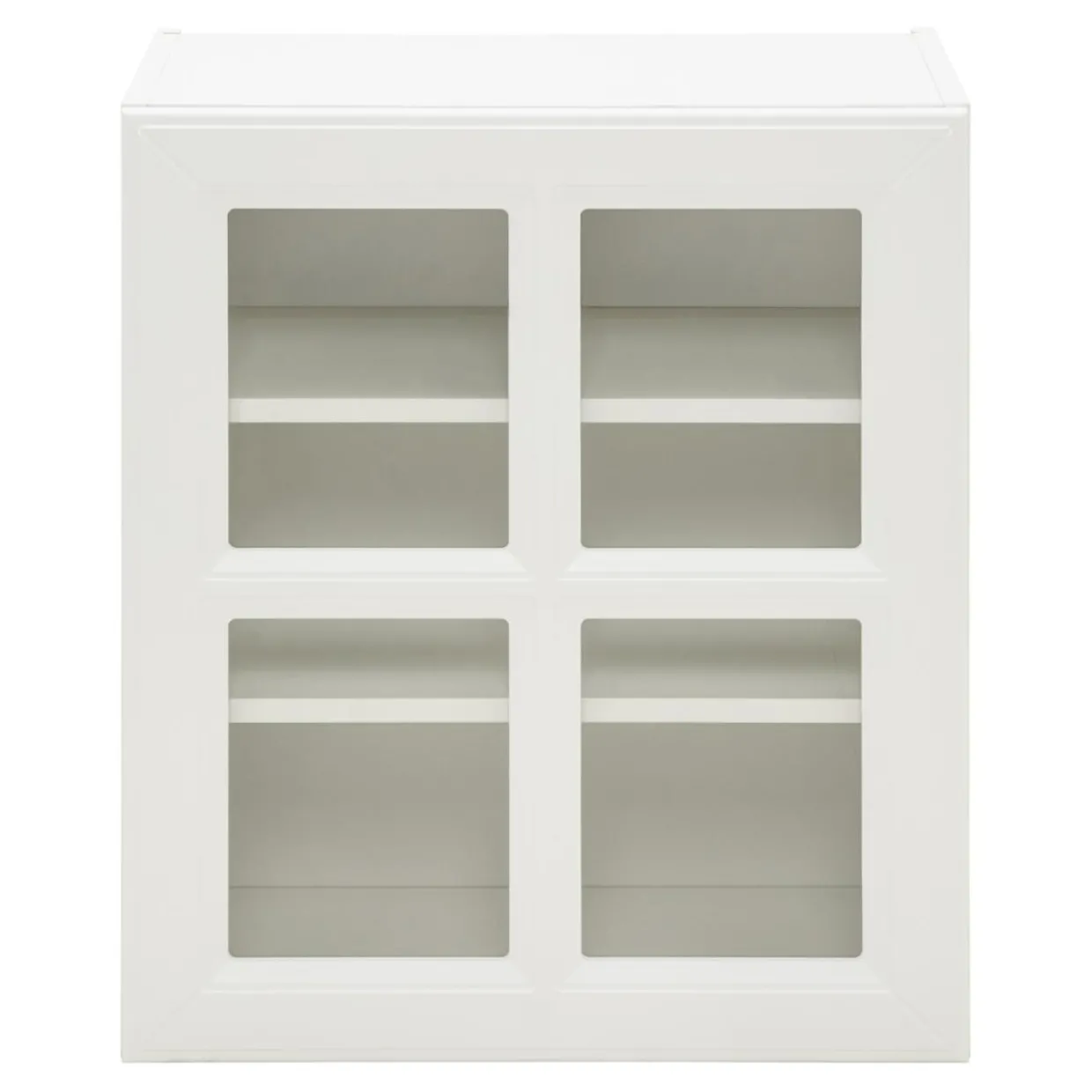 Szeroka na 60 i wysoka na 72 cm idealnie sprawdza się przy nowoczesnej aranżacji kuchennego wnętrza. Front szafki został wykończony w matowym odcieniu bieli. Charakterystyczna ramka, wewnątrz której umieszczone zostało starannie wykonane zdobienie uzupełniono szklanymi elementami, dzięki którym zawartość szafki jest widoczna.