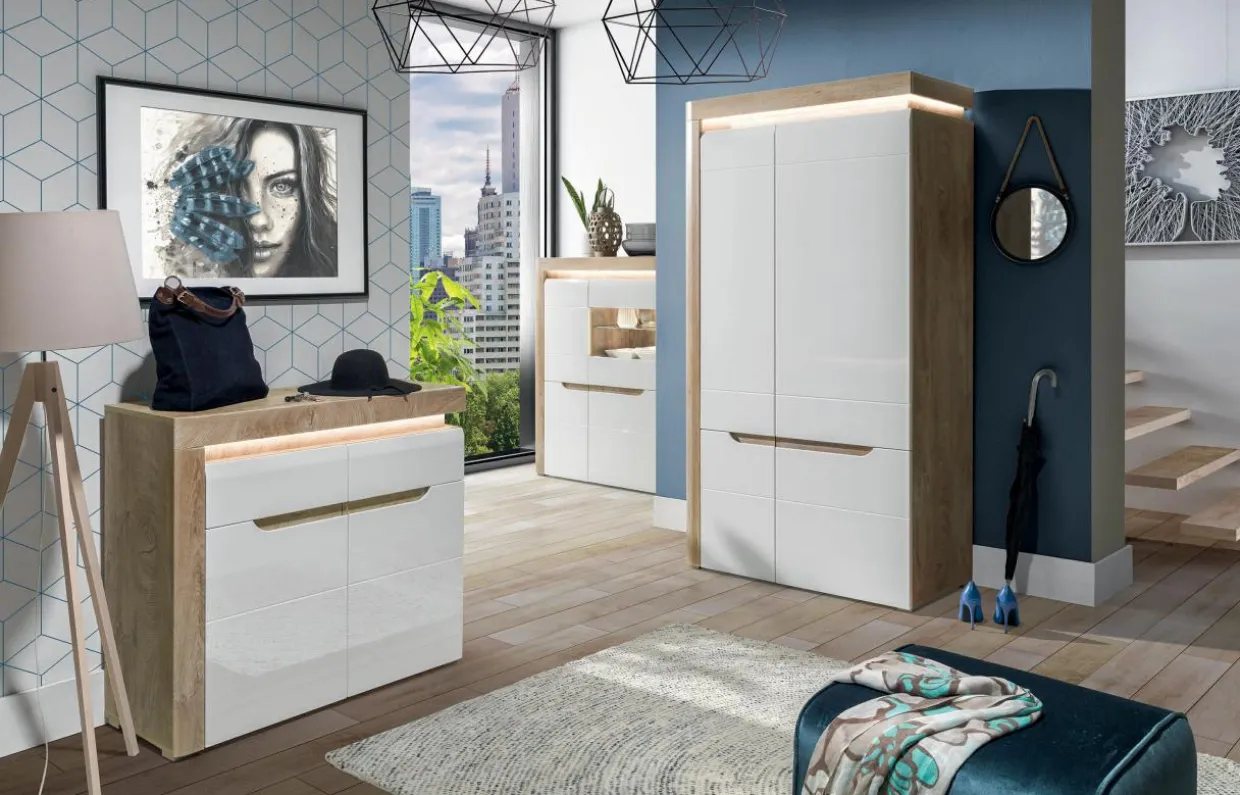 Oświetlenie zawarte w cenie (taśma LED w zagłębieniu pod blatem) wprowadzi do wnętrza wyjątkowy klimat.