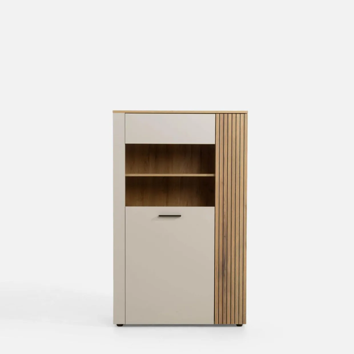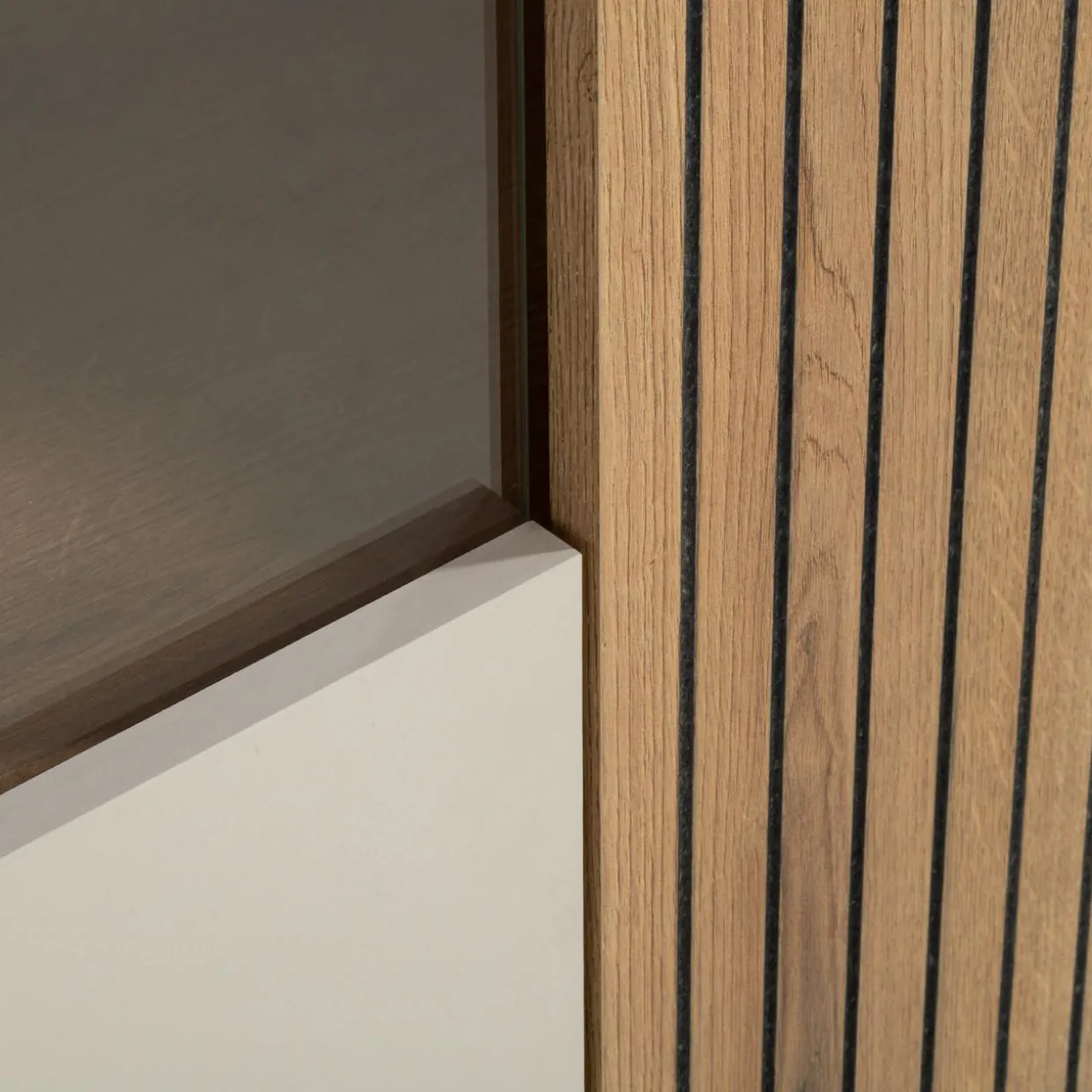 - Wykończenie w kolorze kaszmiru wprowadza elegancję i neutralność. Elementy z rysunkiem dębu evoke nadaje wnętrzu przytulny, naturalny akcent.