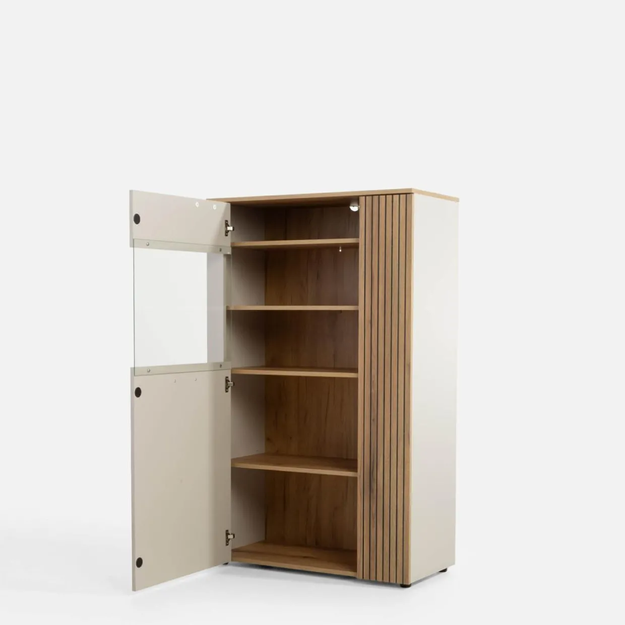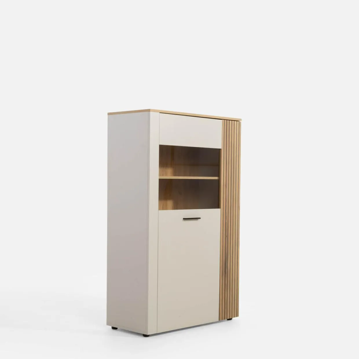 Wyeksponuj ulubione filiżanki i pamiątki w witrynie FREZO. Przeszklony front sprawi, że schowane do środka przedmioty będą jednocześnie widoczne i bezpieczne przed kurzem.