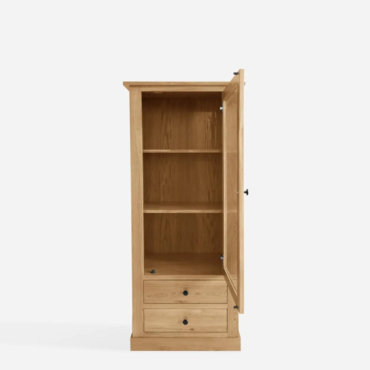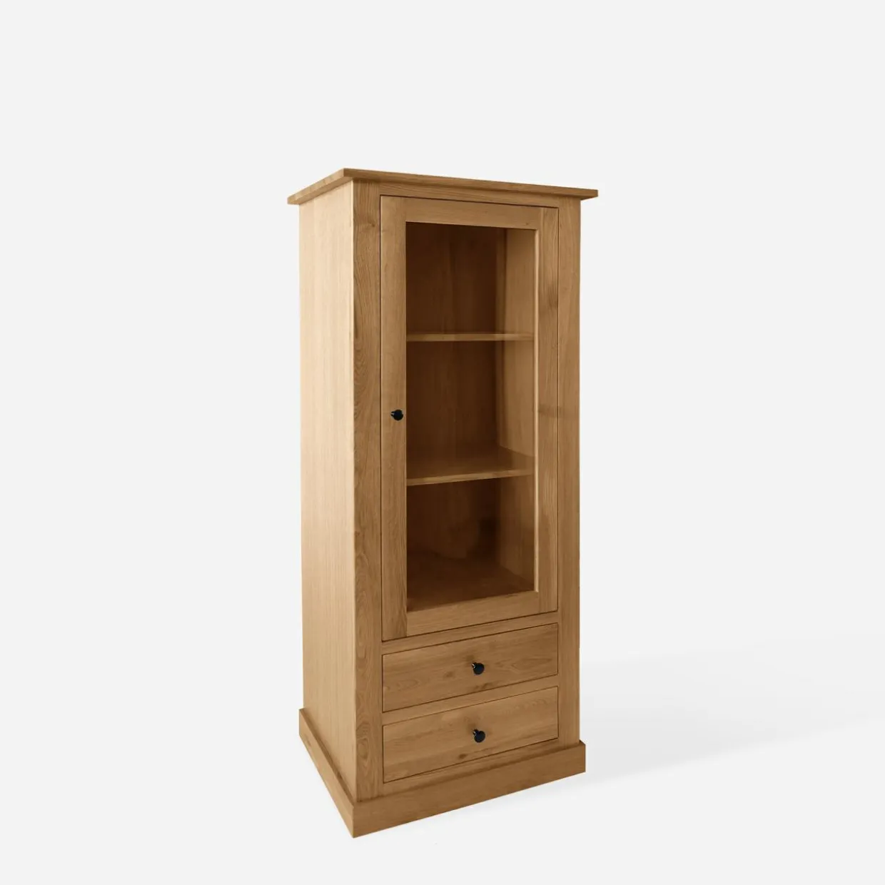 Witryna STELLA – mebel wykonany z litego drewna w kolorze dąb naturalny. Jej niska wysokość, półki i 2 pojemne szuflady czynią ją idealnym rozwiązaniem do salonu, jadalni lub gabinetu. Prosta forma i klasyczne wykończenie nadają wnętrzu przytulności i ponadczasowego stylu.