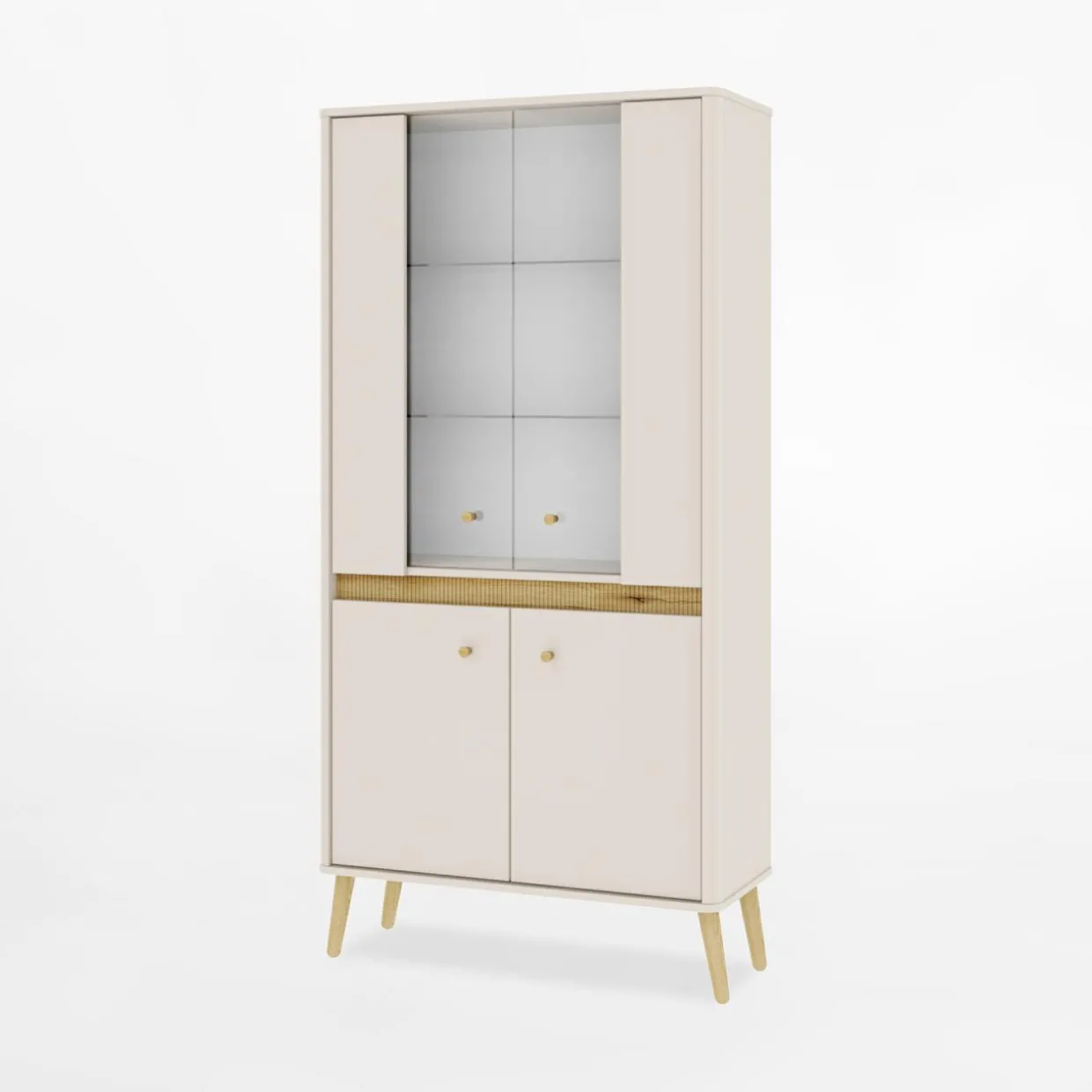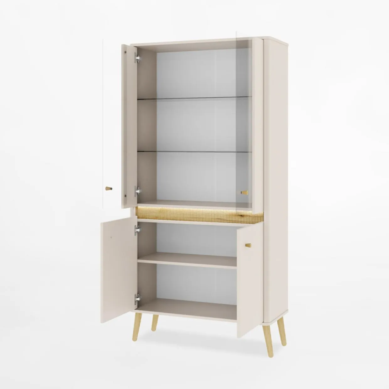 Witryna niska LORENA z podświetleniem listwy + oświetlenie na półki