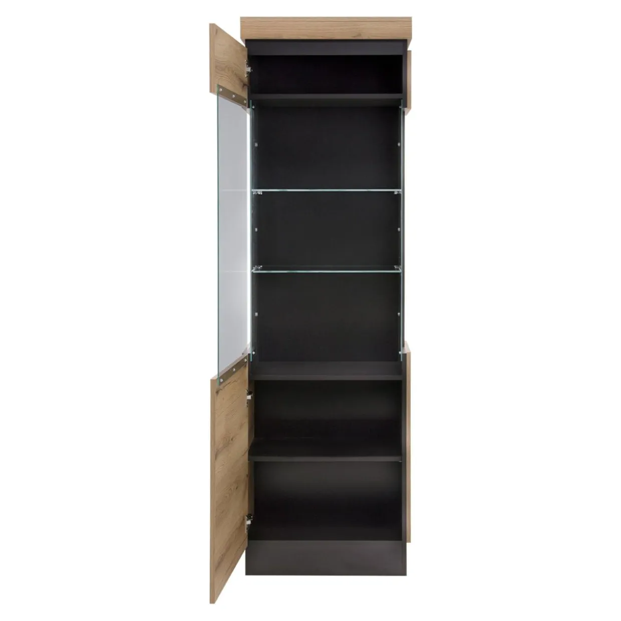 Witryna wąska do salonu CORTE lewa + oświetlenie 2 pkt na półki